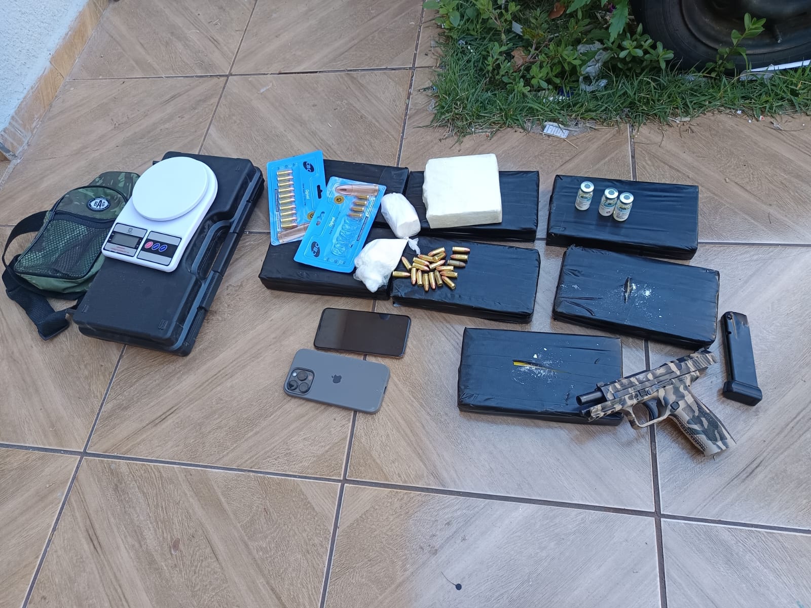 A ação resultou na apreensão de aproximadamente 8 kg de cocaína, uma pistola calibre 9 mm da marca Canik e grande quantidade de munições. O valor estimado da droga apreendida é de cerca de meio milhão de reais, representando um significativo golpe contra o crime organizado na região.