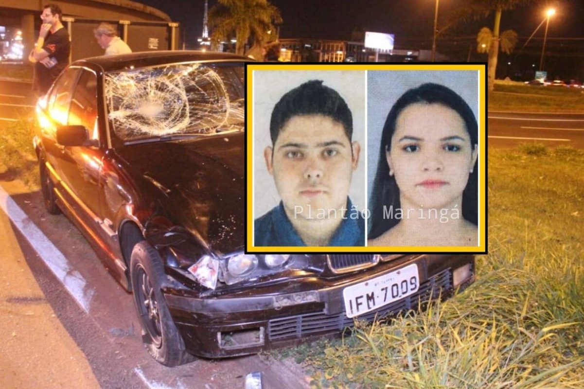 Um casal ficou ferido ao bater a moto que ele pilotava em um carro, embaixo do viaduto da Avenida Colombo, com o Contorno Norte, na divisa de Maringá e Sarandi, na noite deste domingo (16).