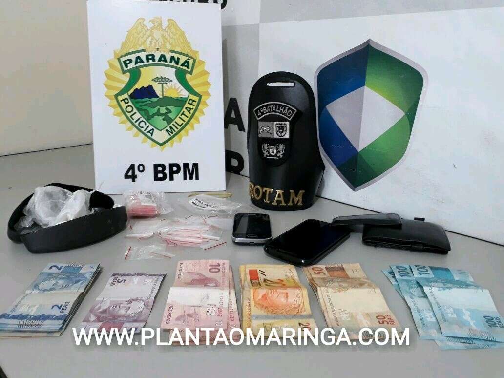 Um homem de 27 anos foi preso no final da tarde desta segunda-feira (22) na cidade Paiçandu. A equipe ROTAM em patrulhamento no Jardim Canadá, ao abordar um veículo com atitude suspeita, em seu interior foi encontrado 125 maços de cigarros contrabandeados. Diante dos fatos os policiais se deslocaram até a residência do condutor, em um dos cômodos foi localizado a quantia de 30 gramas de cocaína e papelotes para comercialização do entorpecente, a quantia de R$ 1,149,00 em dinheiro em espécie e dois celulares também foi apreendido.