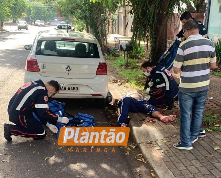 Um grave acidente de trânsito envolvendo um carro e uma motocicleta foi registrado na Rua Cariovaldo Ferreira, no bairro Jardim Aeroporto, em Maringá, na manhã desta segunda-feira 12. A colisão deixou o motociclista Valdevino José dos Santos, de 66 anos, com ferimentos grave.