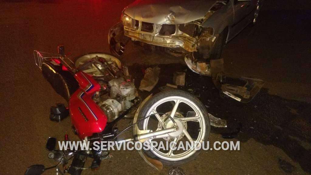 O acidente que envolveu um veículo VW/Saveiro e um motociclista Honda/ML aconteceu por volta das 20hs desta sexta-feira (06) no cruzamento da Rua Adelina Sola com rua a Condé do Bonfim no Jardim Guanabara em Paiçandu.