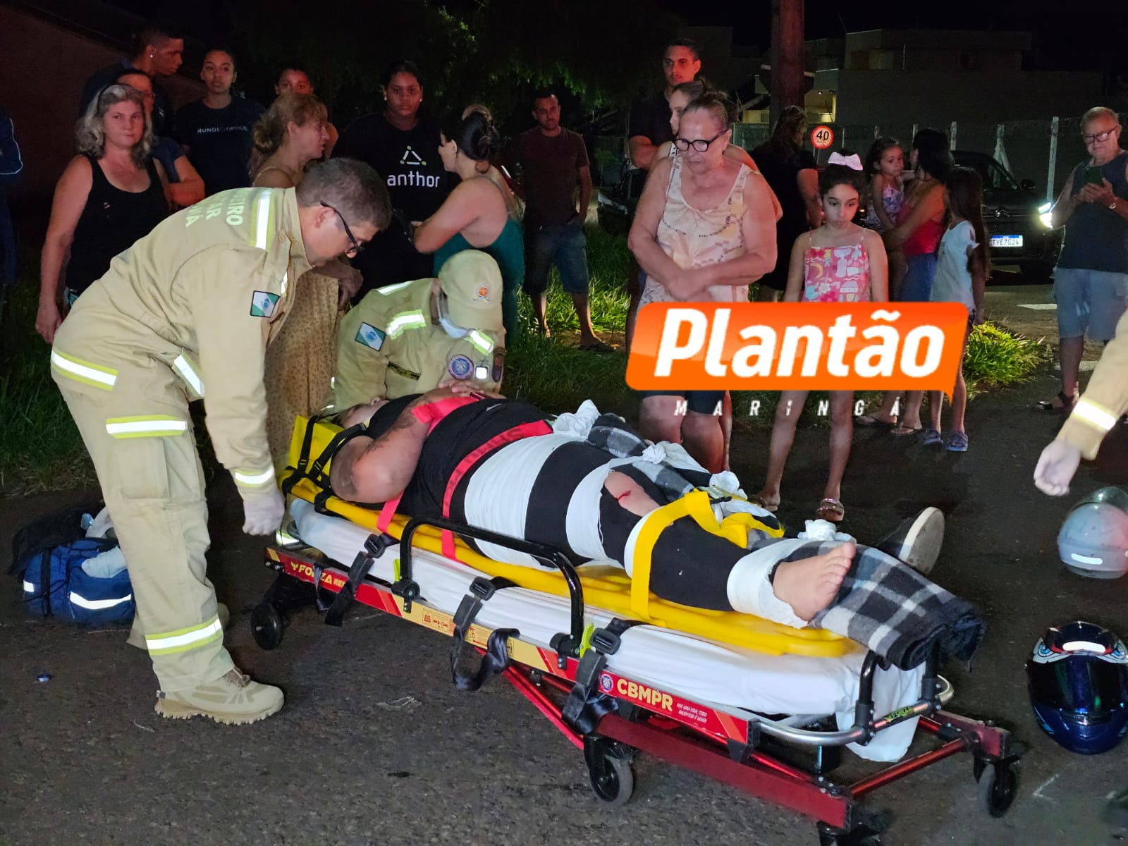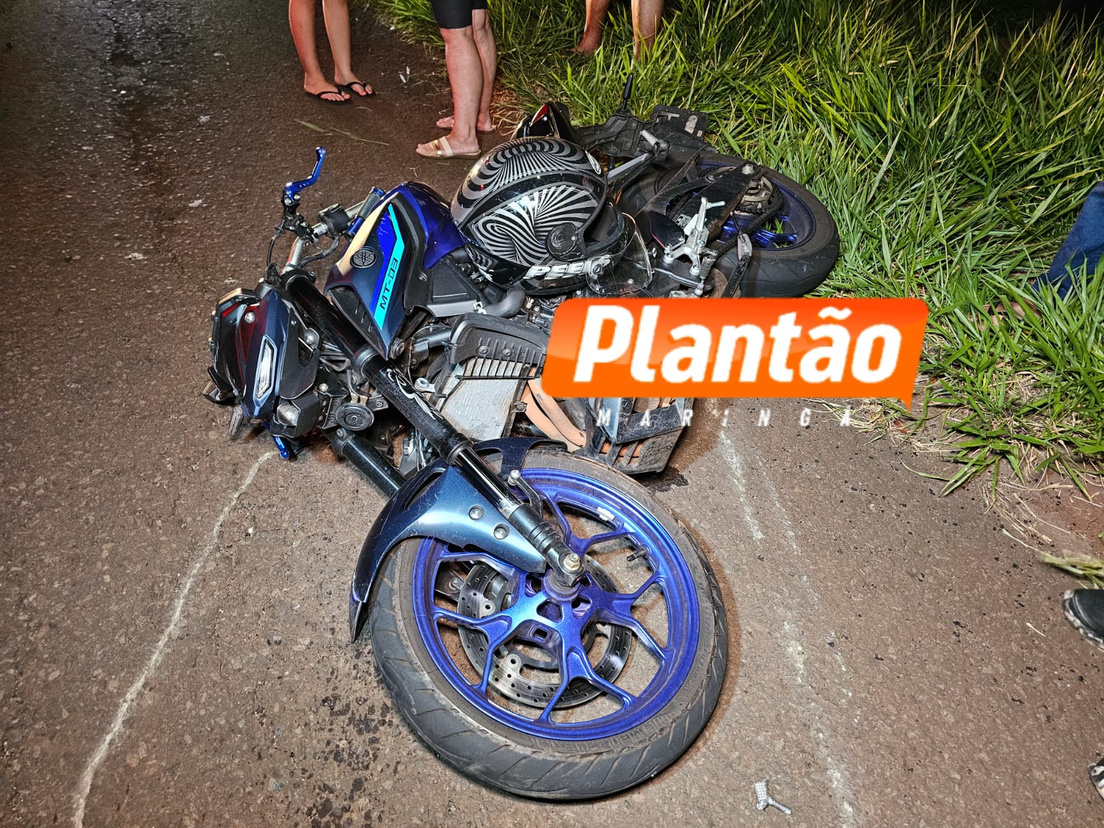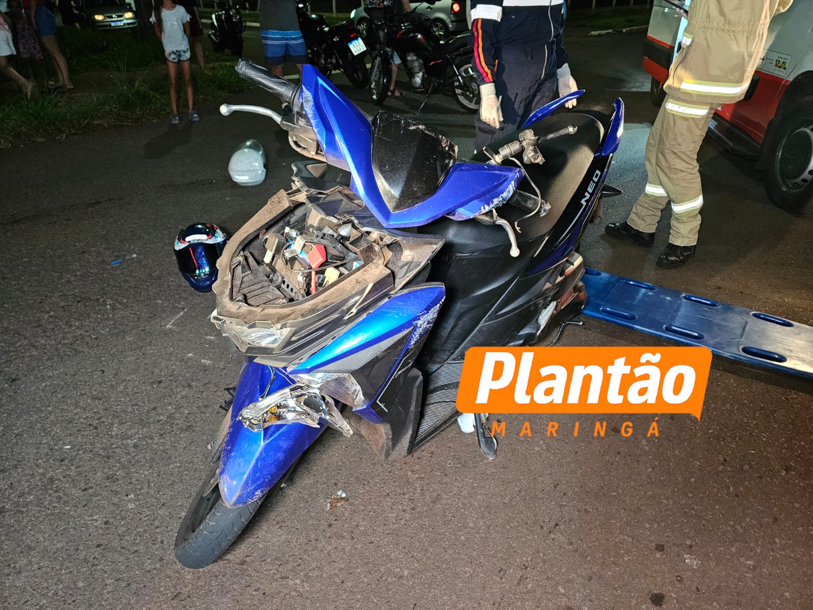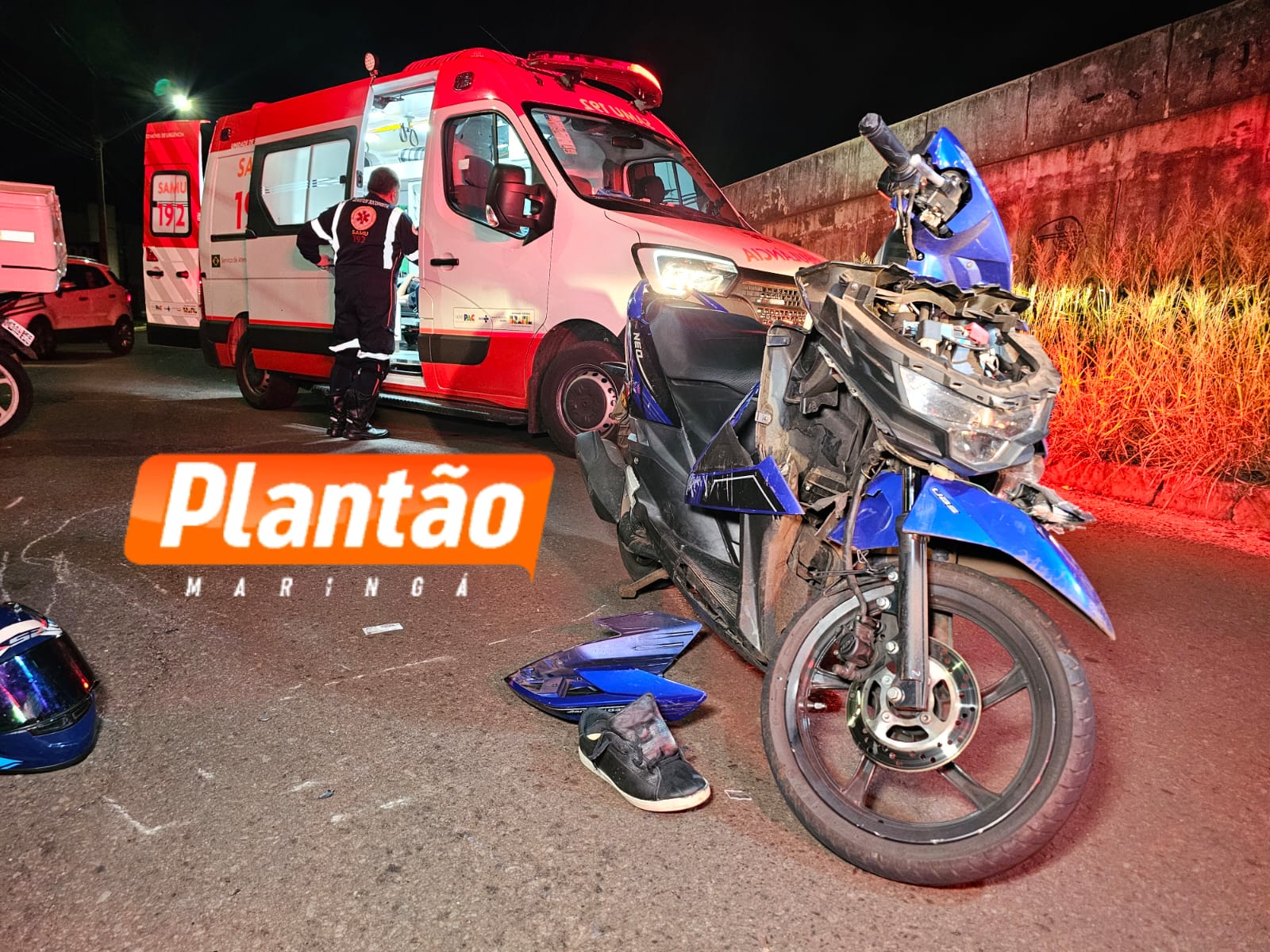 Três pessoas ficaram feridas na noite desta sexta-feira (9) após uma colisão envolvendo duas motocicletas na Rua Rodolfo Crem, marginal do Contorno Norte, no bairro Jardim Três Lagoas, em Maringá.