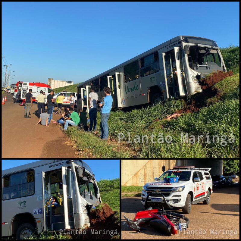 Um acidente envolvendo um ônibus do Transporte Coletiva e uma moto deixou mais de 24 pessoas feridas na manhã de terça-feira (28) na marginal da Rodovia PR-323, entre Maringá e Paiçandu.