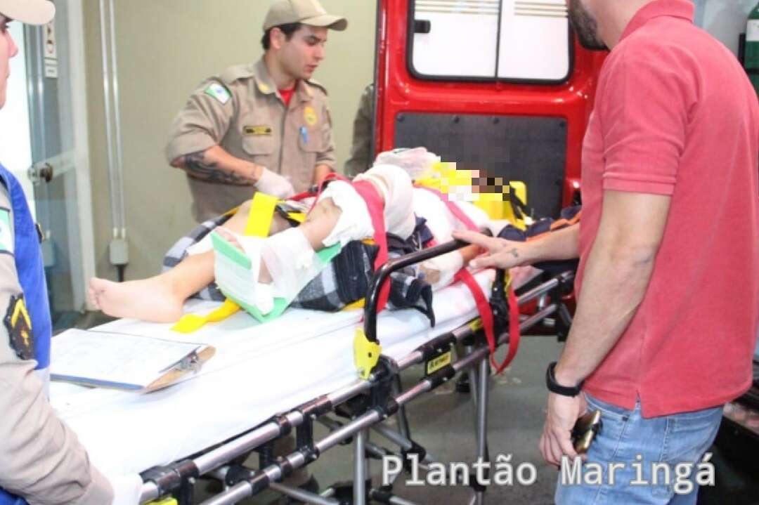 Um menino de 08 anos que ocupava a garupa de uma motoneta Honda Biz, sofreu ferimentos considerados graves em um acidente de trânsito registrado hoje a tarde na área central de Maringá. Além da motoneta o acidente envolveu um veículo modelo GM Prisma. A batida ocorreu no cruzamento da Avenida Tiradentes com a Rua Vaz Caminha, próximo a Catedral.