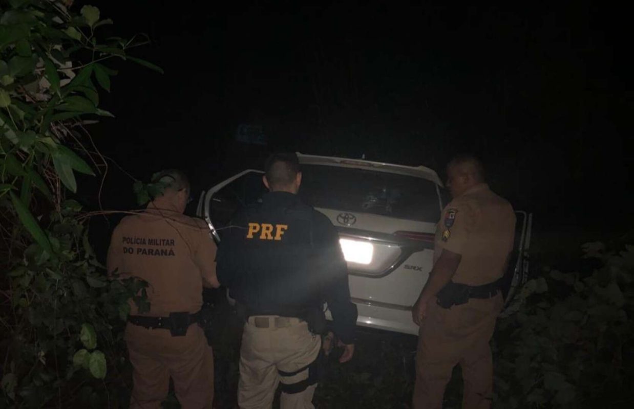 Após exaustivas rondas, agentes da PRF e PMs conseguiram localizar a Hilux embrenhada a uma área de vegetação densa na zona rural de Nova Esperança, porém os indivíduos não foram localizados.