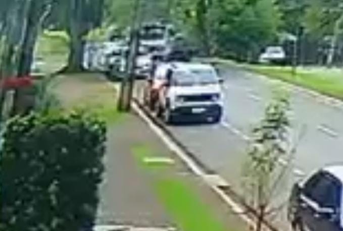 Conforme a gravação, um veículo que trafegava pela Rua 21 de Abril, invadiu a preferencial e foi atingido pelo caminhão que na sequência, bateu em outros dois carros estacionados. Apesar da gravidade do impacto, ninguém ficou ferido. A condutora do veículo que invadiu a preferencial é moradora no Paraguai e ficou em estado de choque após o acidente. A ocorrência foi devidamente registrada pela Polícia Militar. Informações GMC-ONLINE