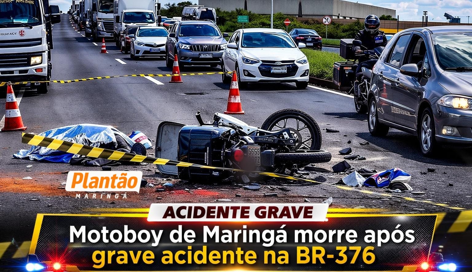 Um grave acidente tirou a vida do motoboy maringaense Luan Gustavo da Silva Carlos, de 22 anos, na manhã desta sexta-feira (27), na rodovia BR-376, no trecho entre Marialva e Mandaguari, nas proximidades do Restaurante Carro de Boi, no norte do Paraná.