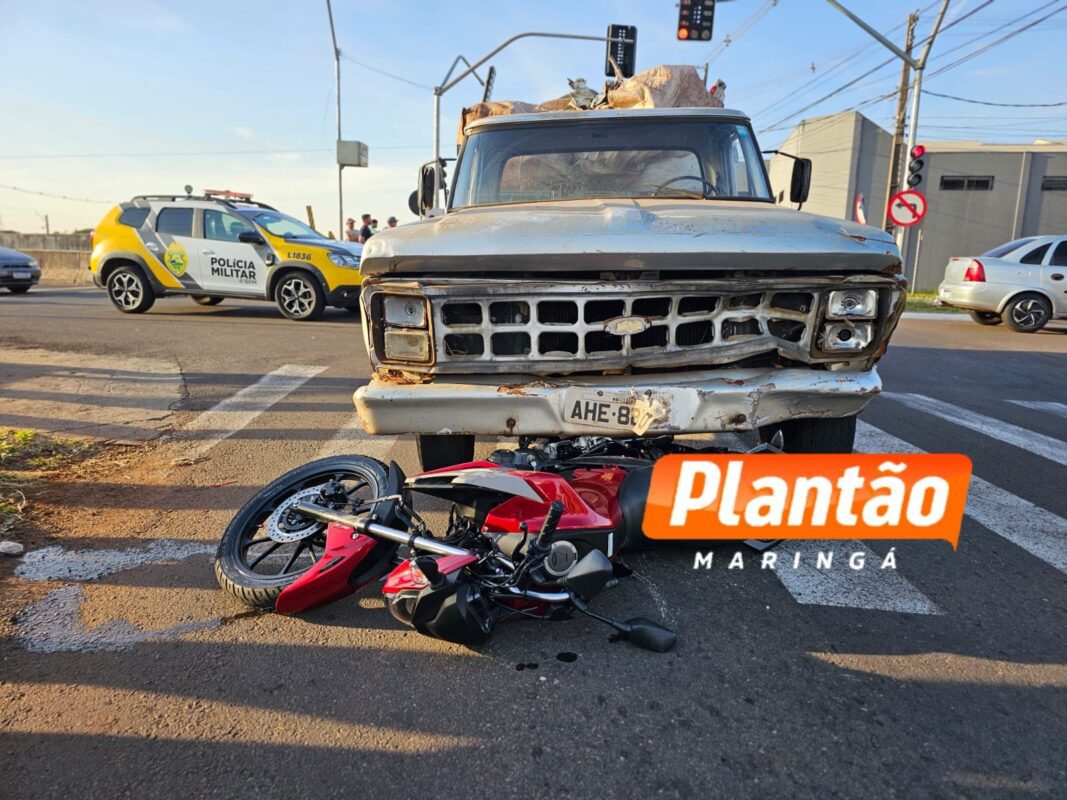 Marcos Vinícius Junior Queiroz, de 18 anos, sofreu ferimentos graves após um acidente de trânsito registrado na tarde deste sábado (2), no cruzamento da Avenida Franklin Delano Roosevelt com a Marginal do Contorno Norte, em Maringá.