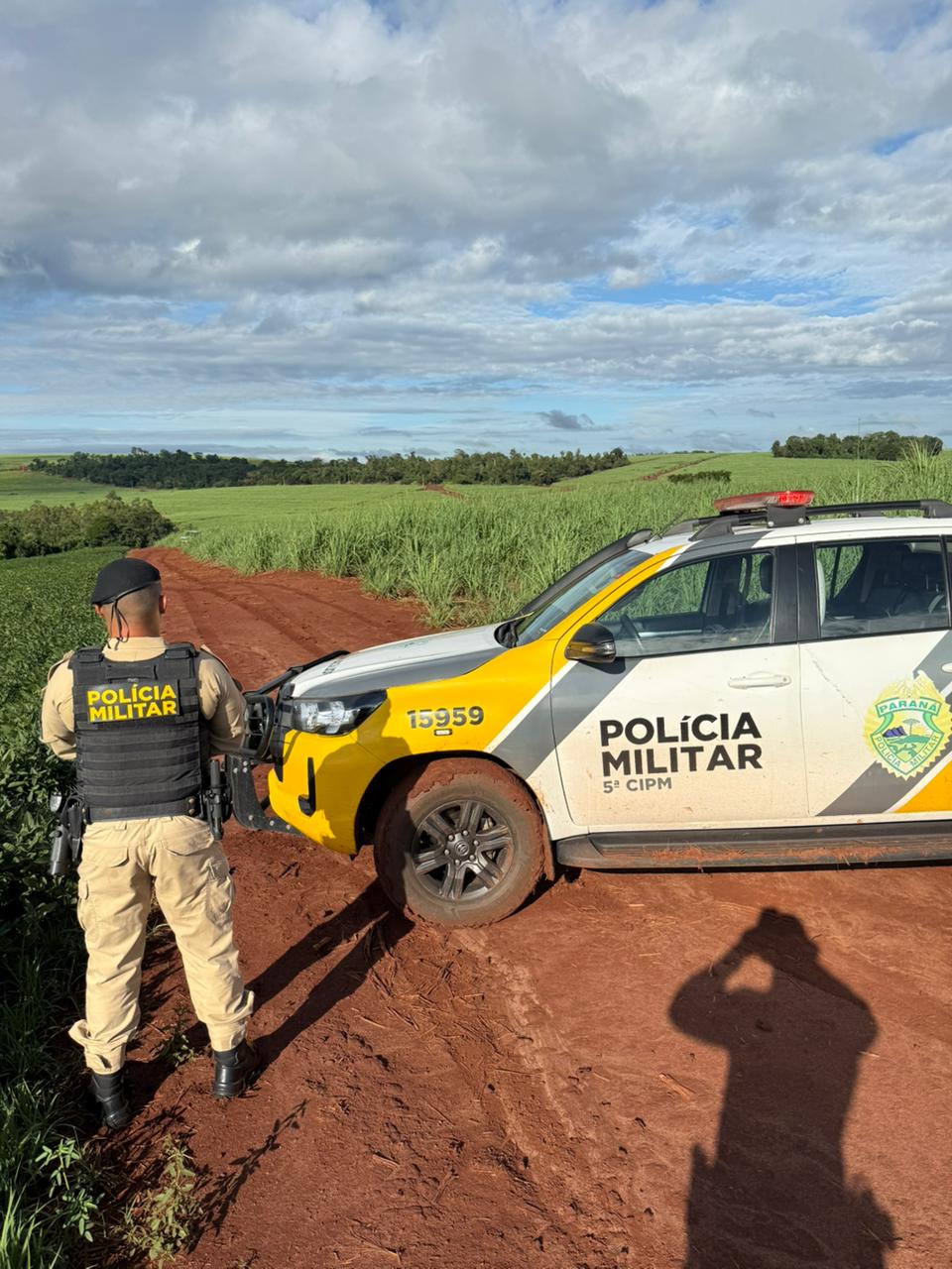 Na manhã desta sexta-feira (13), equipes da Polícia Militar encontraram o veículo usado pelo homem em uma área de mata na zona rural de São Manoel do Paraná. Iasmim Calixto/Maringapost