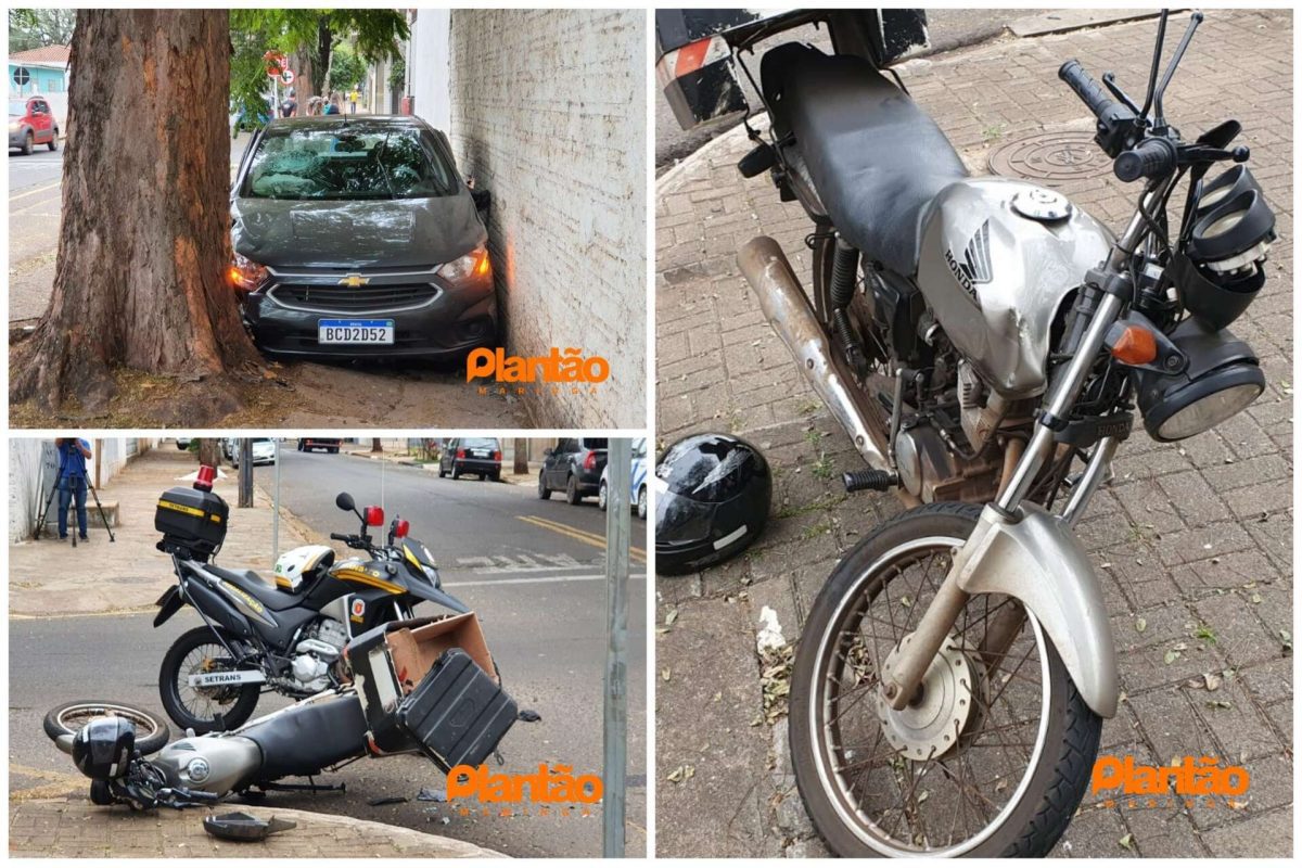 Um motociclista ficou ferido após se envolver em um acidente com um carro na manhã desta quinta-feira (12). A batida aconteceu no cruzamento da Rua São João, com a Rua Afonso Pena. Veja o vídeo aqui