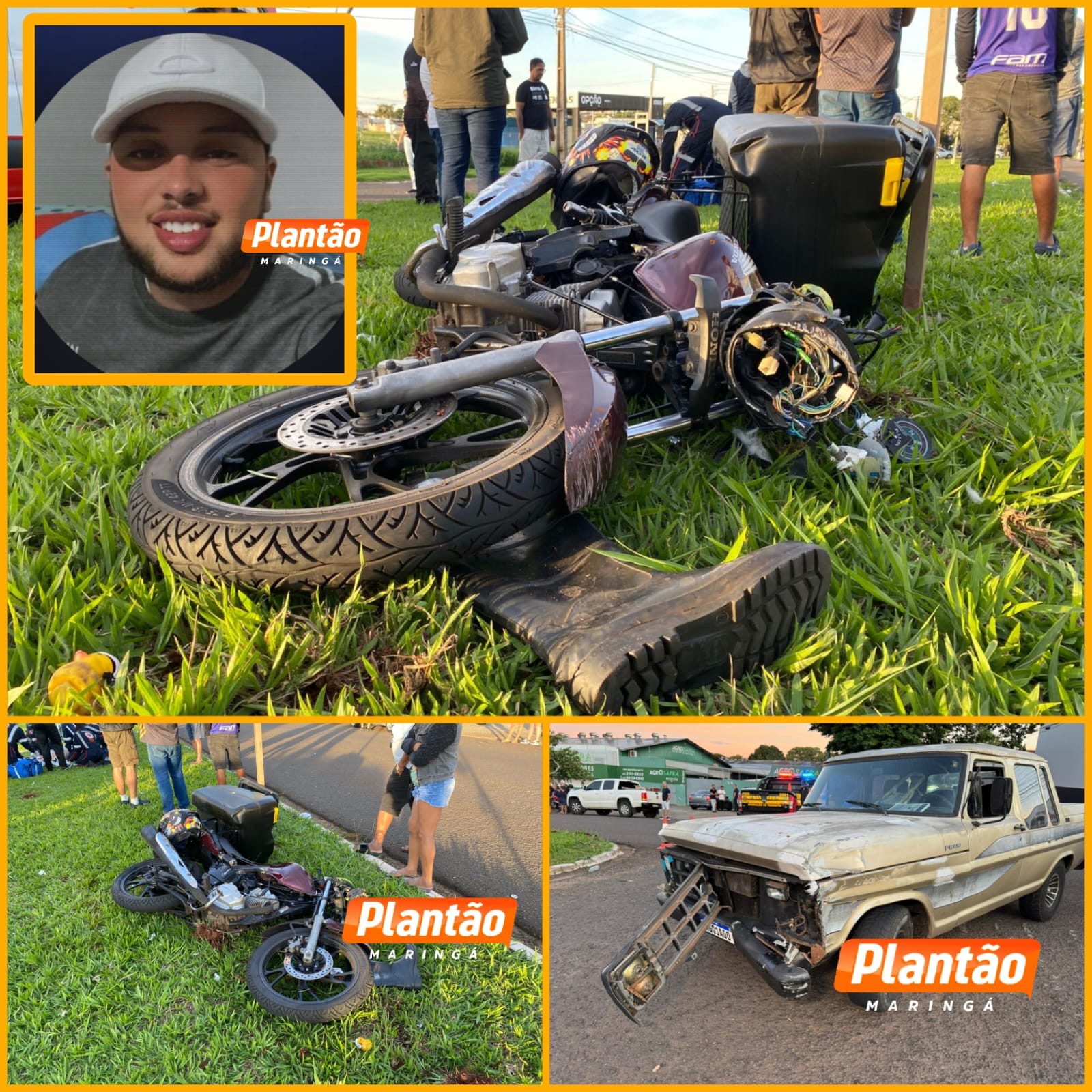 Um grave acidente registrado na tarde deste sábado (8) tirou a vida do motociclista João Pedro Farias Maia, de 27 anos, na Avenida Morangueira, em Maringá. A colisão envolveu a motocicleta conduzida por João Pedro e uma caminhonete Ford F1000.