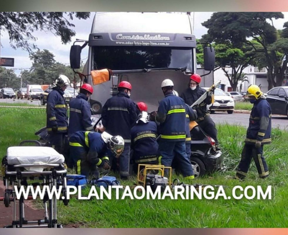 O acidente grave ocorreu na manhã de segunda-feira (02) na Avenida Colombo em Maringá. A condutora perdeu o controle do veículo G.M Celta após outro veículo bater na traseira do automóvel, que acabou invadindo a pista contrária, sendo atingida violentamente por um caminhão tanque que estava trafegando sentido Sarandi/ carro sentido Maringá, quando ocorreu a colisão.