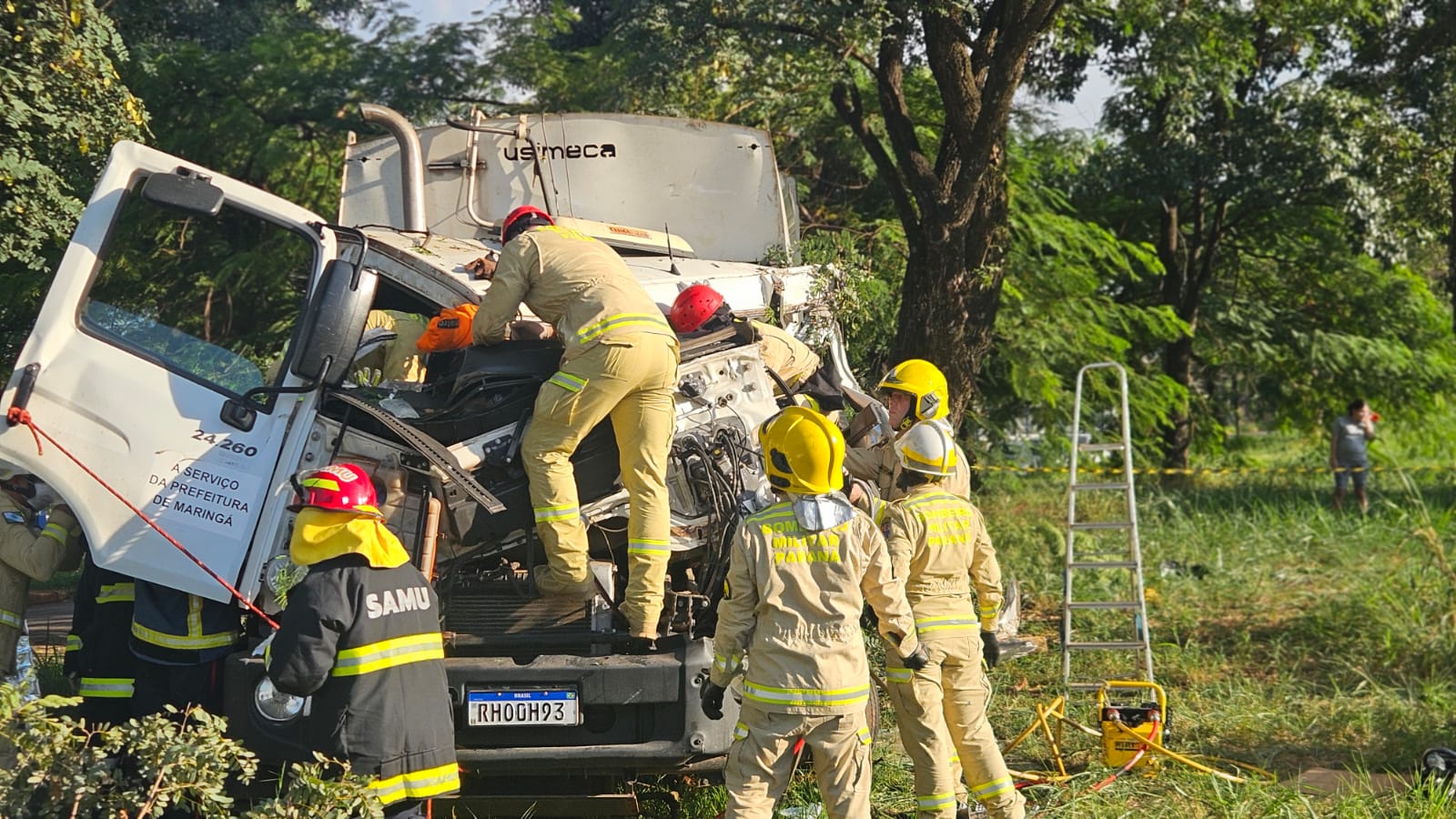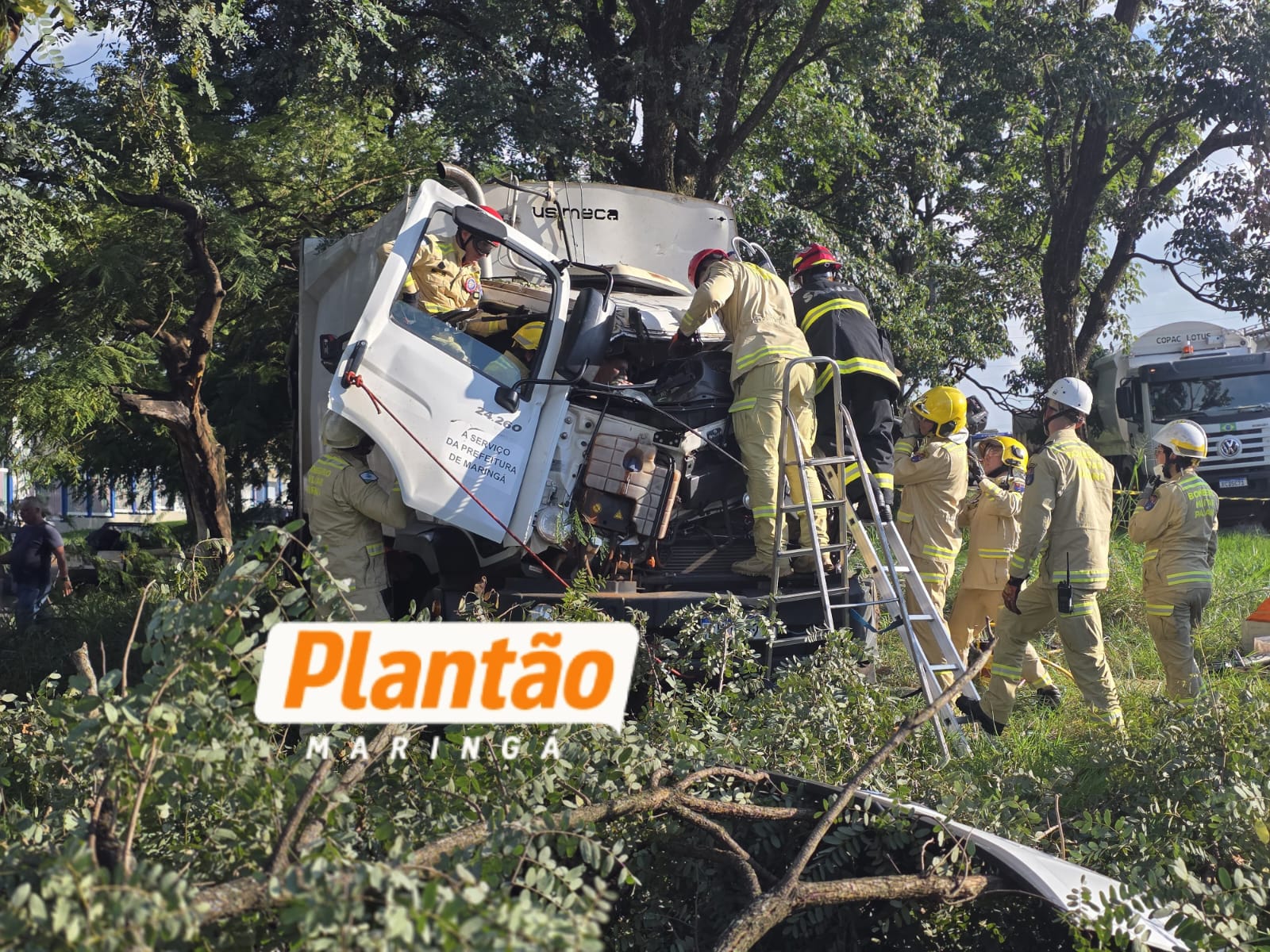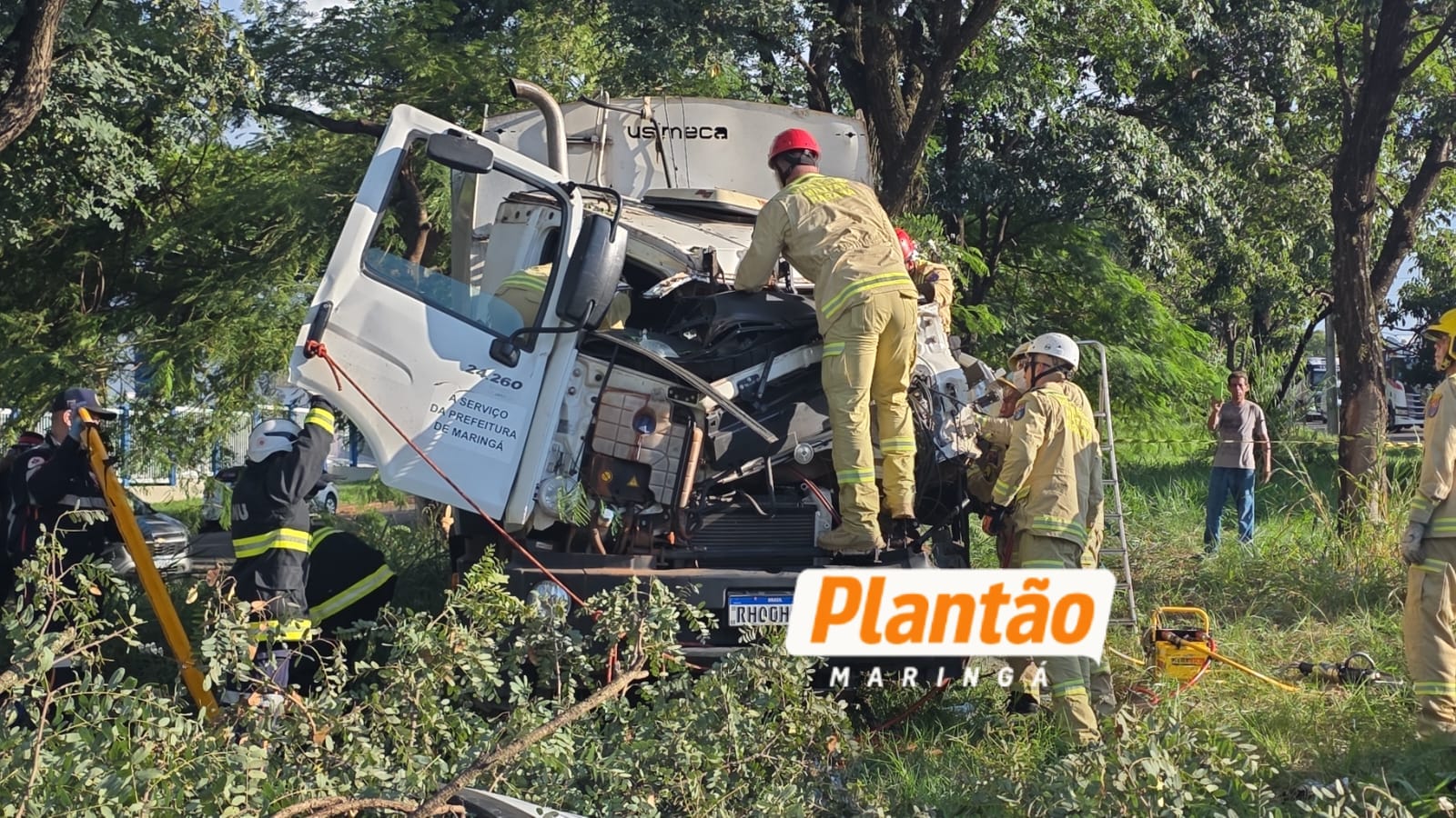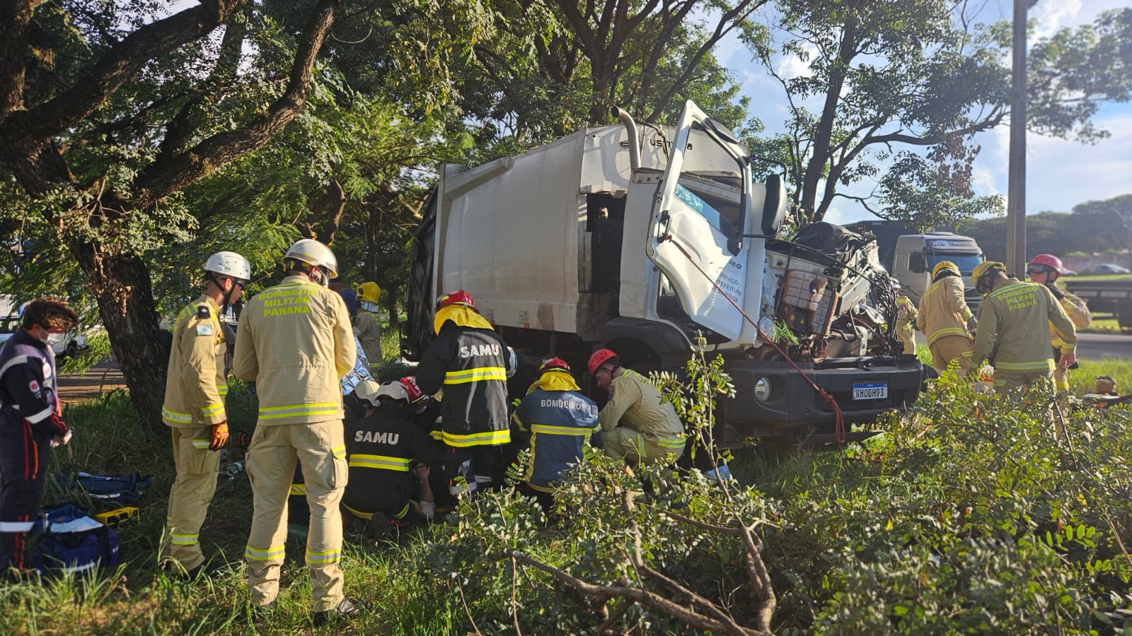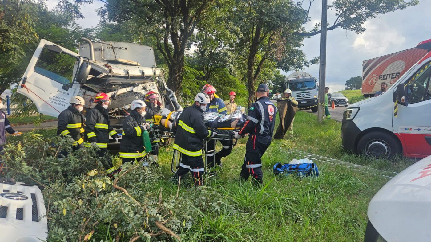 Um grave acidente envolvendo um caminhão da coleta seletiva de Maringá foi registrado na tarde desta sexta-feira (17), na marginal do Contorno Sul.