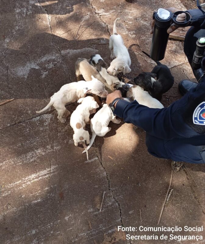 Uma equipe da Patrulha Ambiental foi imediatamente deslocada ao endereço e encontrou os filhotes presos dentro da caixa, em situação de maus-tratos, apresentando sinais de fome e sede.