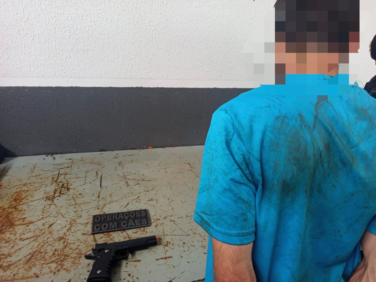 Com base nas informações repassadas, os agentes realizaram buscas e localizaram o suspeito no estacionamento do local. Durante a tentativa de abordagem, o indivíduo desobedeceu às ordens da equipe, sendo necessário o uso de técnicas de contenção para garantir a segurança dos envolvidos.