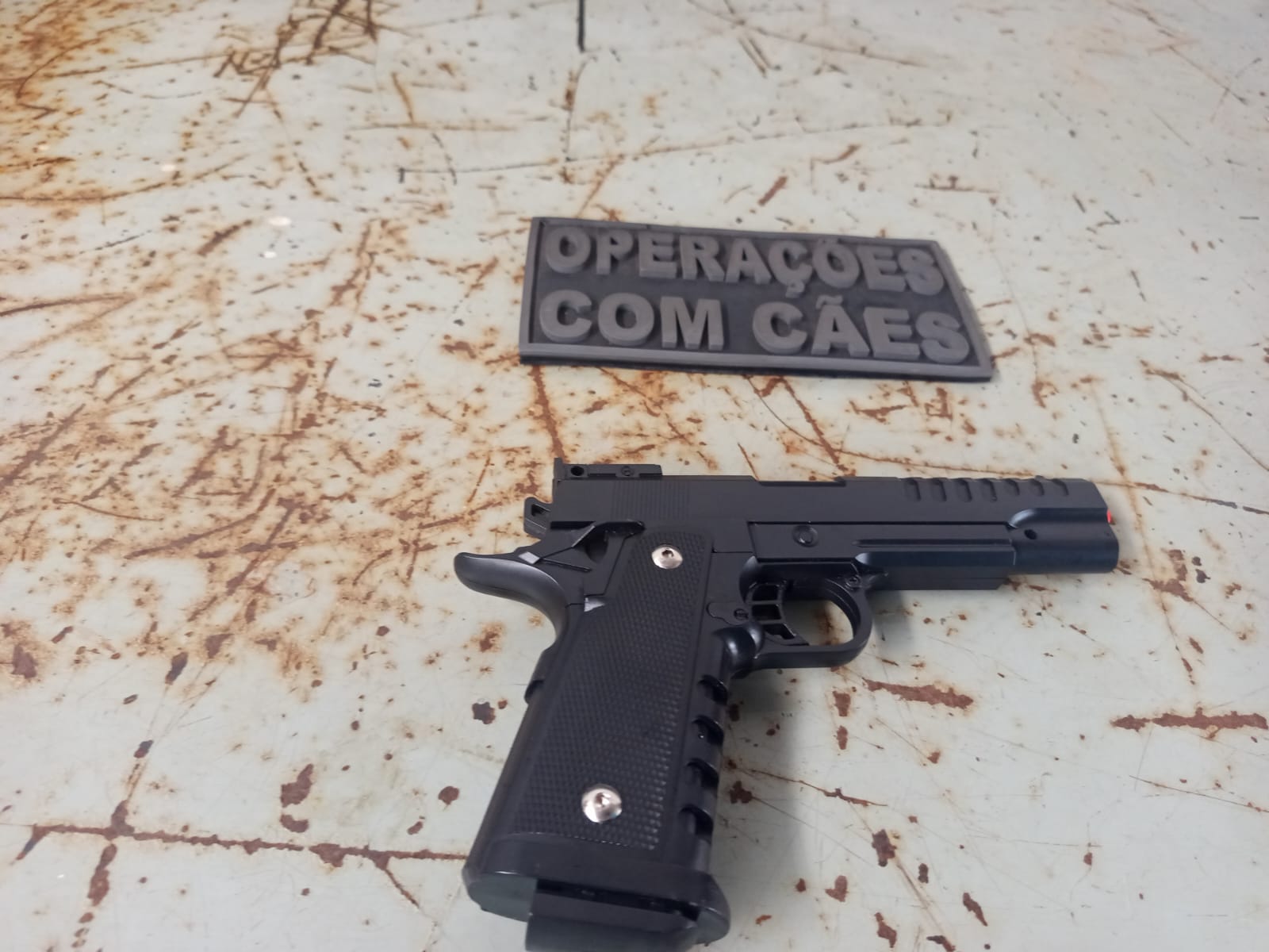 Em revista pessoal, os guardas encontraram um simulacro de arma de fogo e uma pequena porção de substância análoga à maconha. Diante da situação, o homem recebeu voz de prisão.