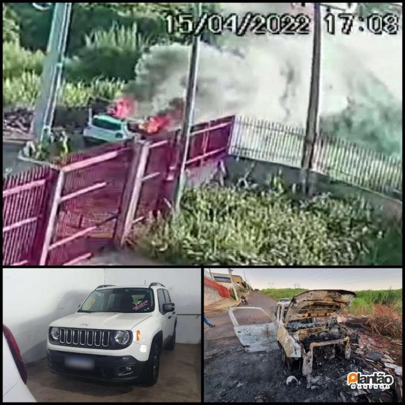 O Corpo de Bombeiros foram acionados e quando chegaram no local, o Jeep Renegade já havia sido destruído pelo fogo.