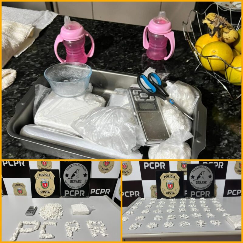 Um homem foi preso em flagrante por tráfico de drogas na manhã desta segunda-feira, 28, no Conjunto Requião, em Maringá. Cerca de 900 gramas de cocaína foram encontradas na casa dele, durante o cumprimento de um mandado de busca e apreensão, conduzido pelo Departamento Estadual de Repressão ao Narcotráfico (Denarc). A droga é avaliada em R$ 45 mil.
