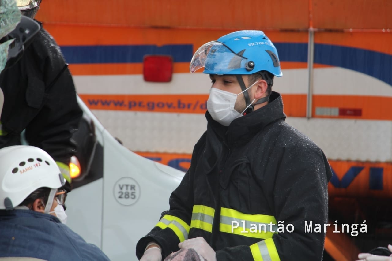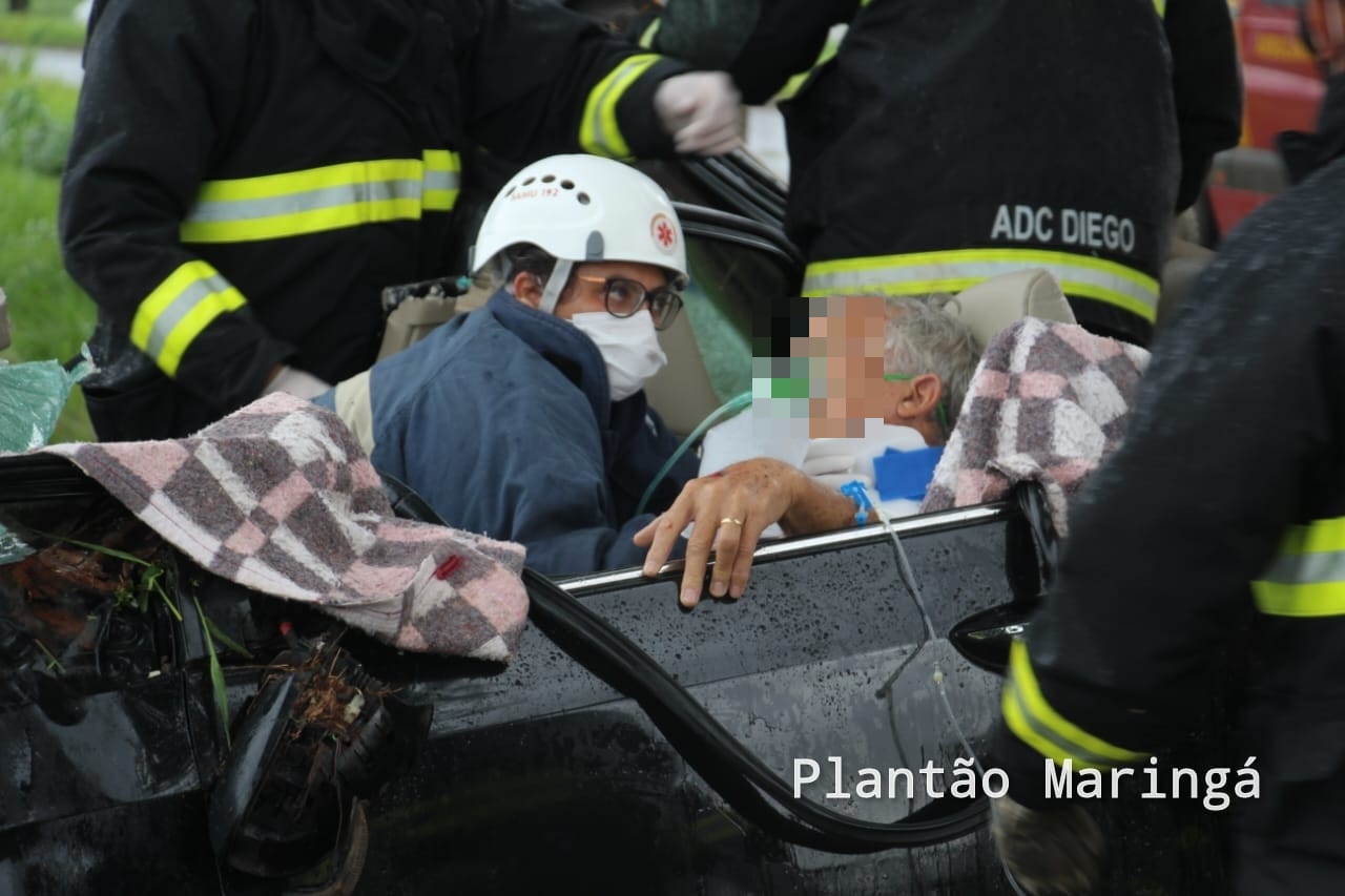 Um idoso de 74 anos foi resgatado por socorristas da Defesa Civil e do Serviço de Atendimento Móvel de Urgência (Samu), ao ficar preso entre as ferragens em um capotamento na manhã deste domingo (26) na rodovia BR-376, em Marialva.