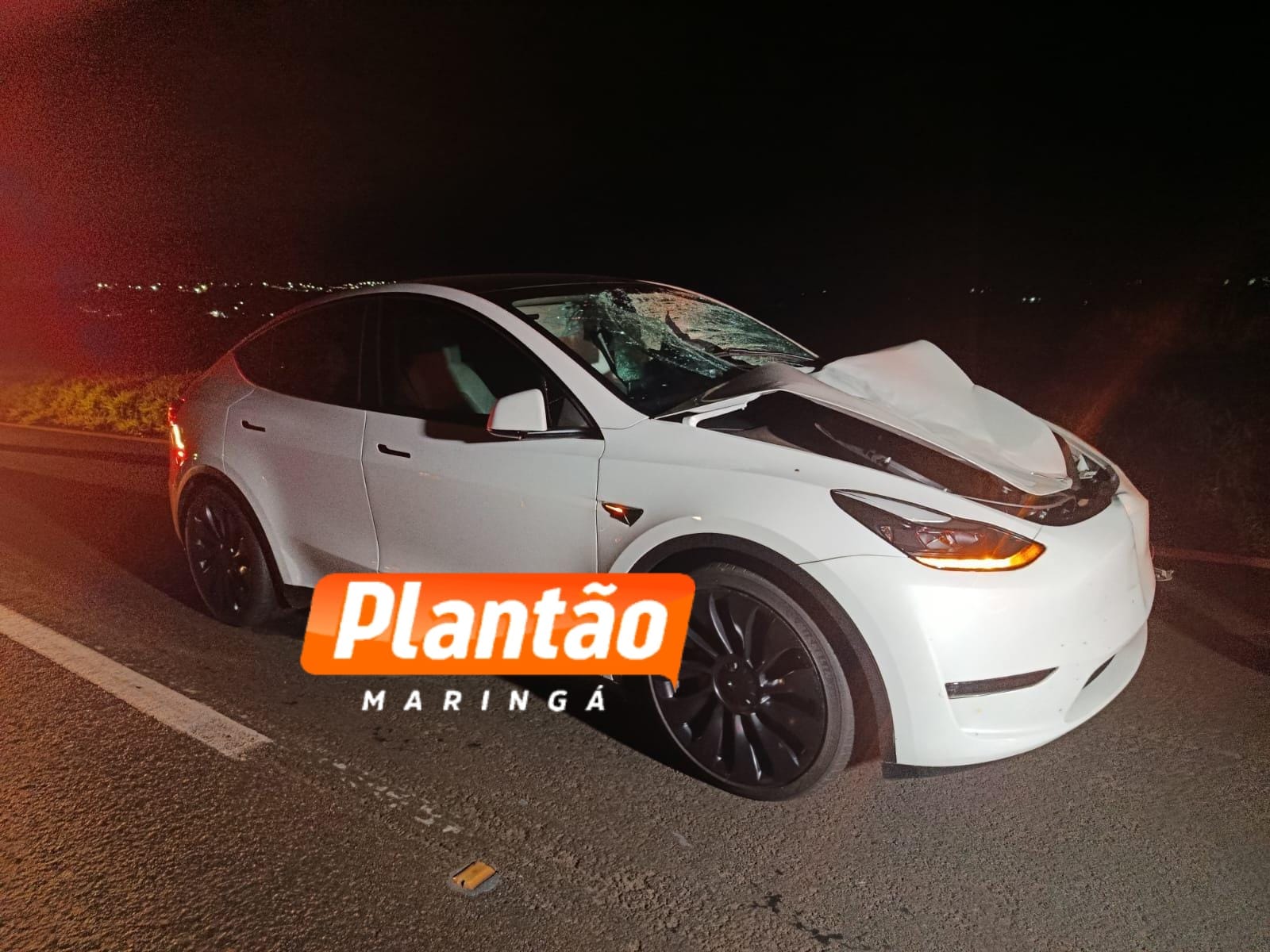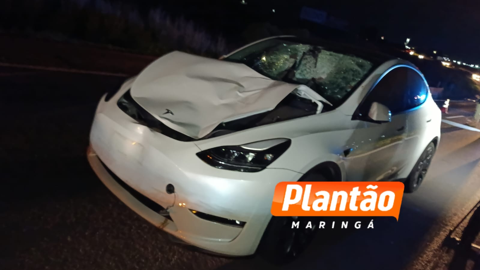 A motorista do Tesla também precisou de atendimento emergencial, realizado pela Defesa Civil de Marialva. O impacto foi violento: a frente do veículo ficou totalmente destruída, o para-brisa se quebrou e parte do corpo da vítima chegou a ser projetada para dentro do carro. Um detalhe que chama atenção é que o airbag do Tesla não foi acionado durante a colisão.