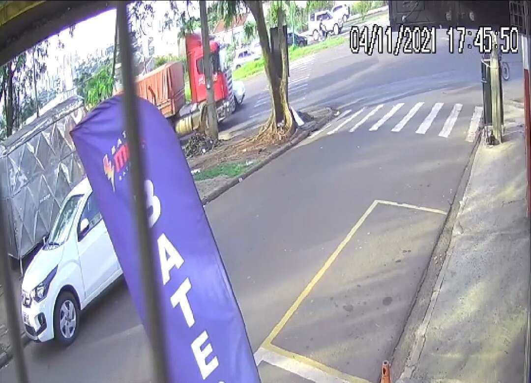Porém imagens de câmeras mostram que o carro para no sinal que segundo o motorista do automóvel já estava fechado. Na sequência a carreta continuou o trajeto e atinge a moto que seguia ao lado do carro. Outras câmeras de segurança devem ajudar a esclarecer as causas do acidente.