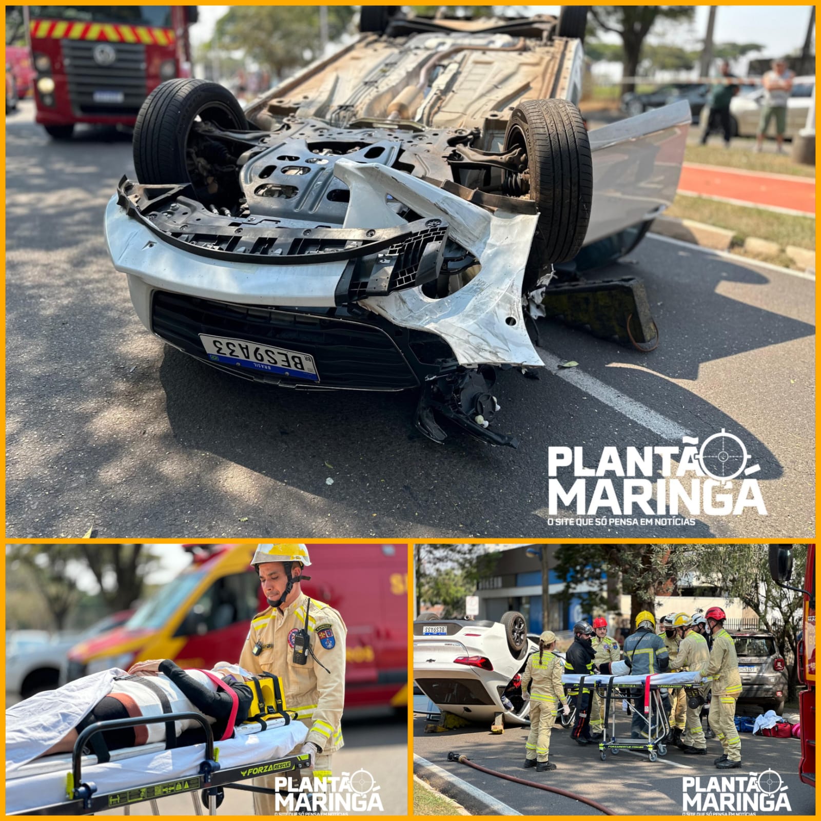 Uma mulher de 71 anos capotou o carro depois de bater em dois veículos que estavam estacionados, na tarde deste sábado (17), em Maringá. A ocorrência foi na Avenida Doutor Gastão Vidigal, no bairro Jardim Aeroporto.