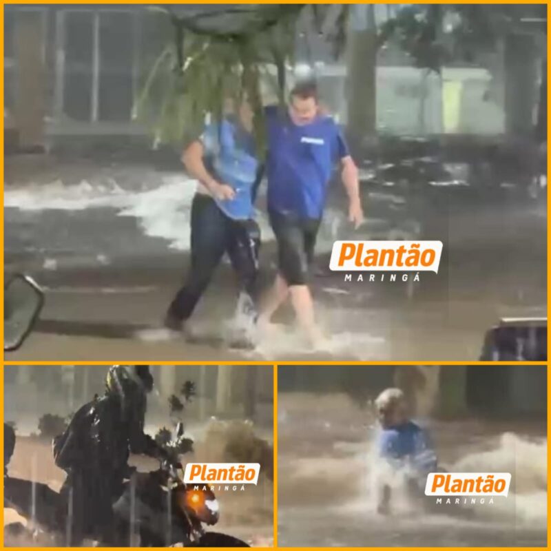 Um idoso foi salvo por um policial militar durante a forte chuva que atingiu Maringá na noite desta terça-feira (31). Segundo informações, o idoso tentava atravessar a Avenida Guaiapó quando acabou sendo arrastado pela correnteza formada pela enxurrada.
