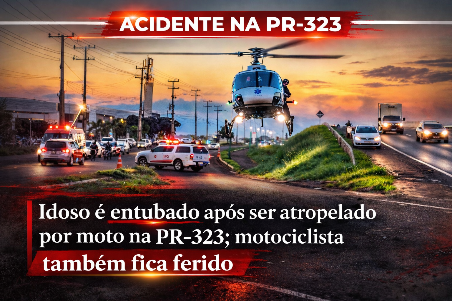 Um grave acidente foi registrado no final da tarde de quinta-feira (26), na Avenida Marechal Castelo Branco, marginal da rodovia, na região do Jardim Bela Vista I, em Paiçandu. A vítima em estado mais grave é o pedestre Mário Perpétuo de Souza, de 70 anos. De acordo com a equipe médica do Serviço de Atendimento Móvel de Urgência (SAMU), ele sofreu traumatismo craniano e precisou ser entubado ainda no local devido à gravidade dos ferimentos. Após os primeiros atendimentos, foi encaminhado ao hospital em estado gravíssimo.