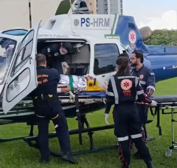 Devido à gravidade do quadro clínico, o idoso recebeu atendimento avançado no local e foi encaminhado de helicóptero ao Hospital Santa Casa de Maringá, onde permanece sob cuidados médicos.