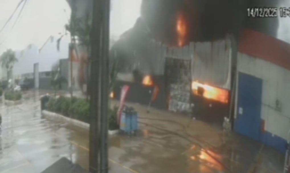 Imagens de câmeras de segurança registraram o momento em que teve início o incêndio que destruiu uma empresa de autopeças, na tarde deste domingo (14), em Maringá. O estabelecimento, que atuaria como distribuidora de peças para caminhões, estava localizado na região do Jardim América e tinha inauguração prevista para a próxima sexta-feira.
