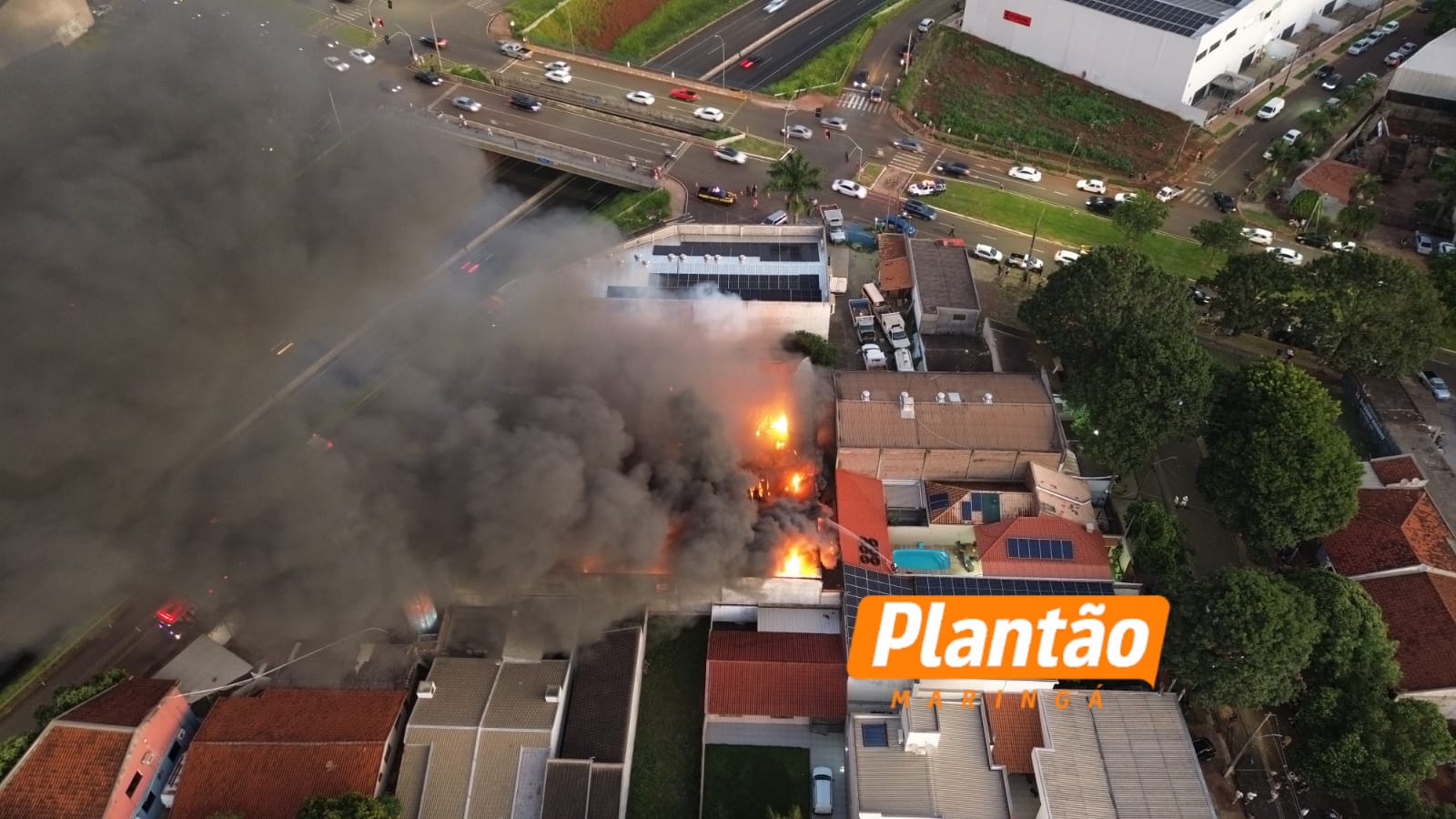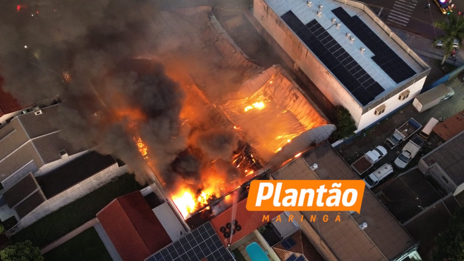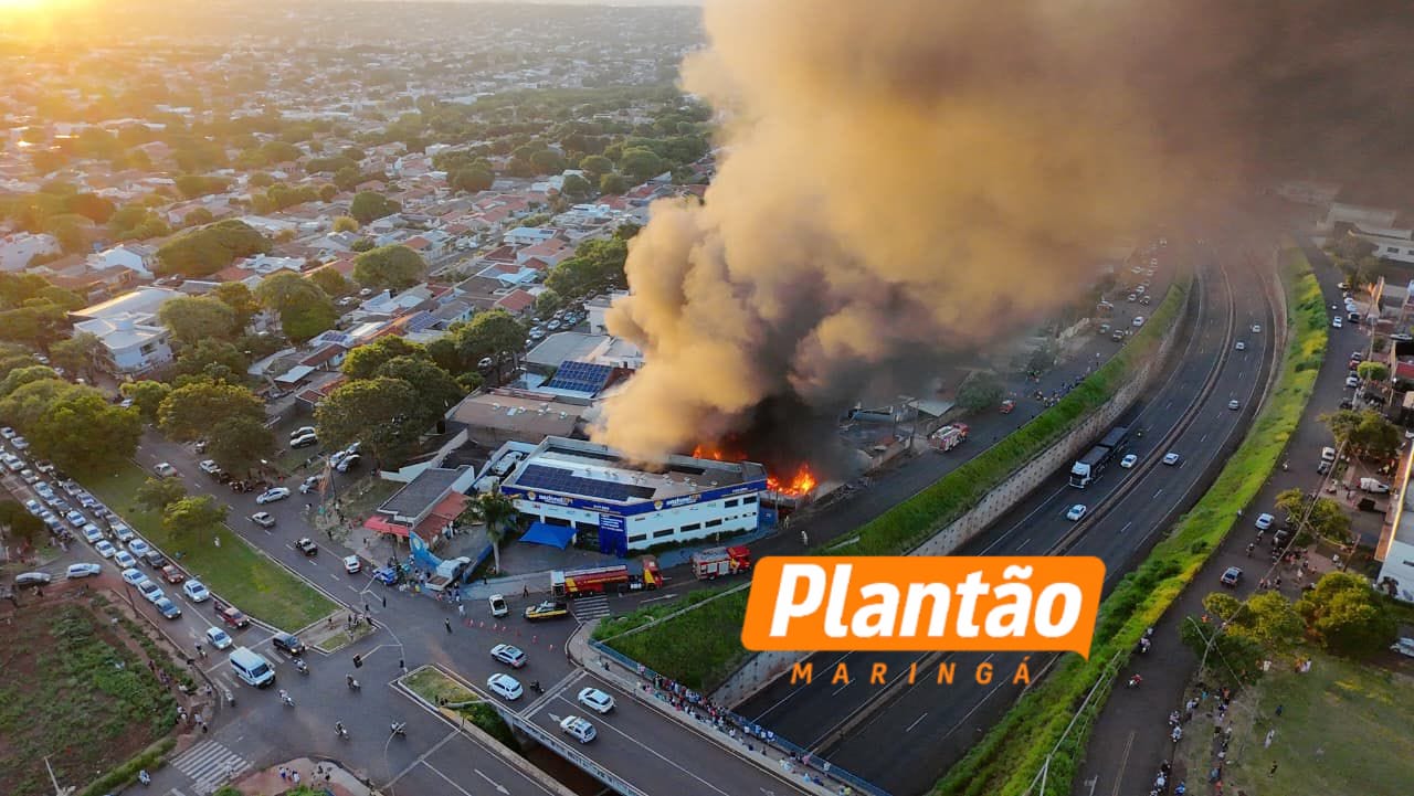Um incêndio de grandes proporções destruiu dois barracões de uma empresa de móveis na tarde deste sábado (31), na Marginal do Contorno Norte, próximo ao cruzamento com a Avenida Guaiapó, em Maringá. As chamas se espalharam rapidamente e mobilizaram diversas equipes do Corpo de Bombeiros, Defesa Civil, Semob, além do apoio de produtores rurais, que cederam caminhões-pipa e maquinário agrícola para auxiliar no fornecimento de água durante o combate ao fogo.