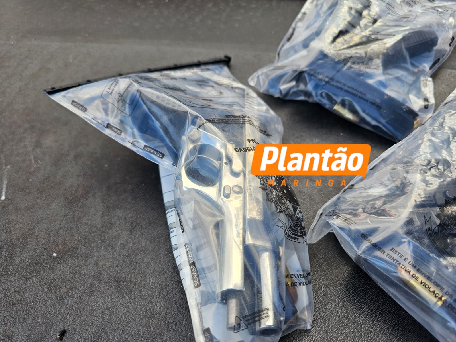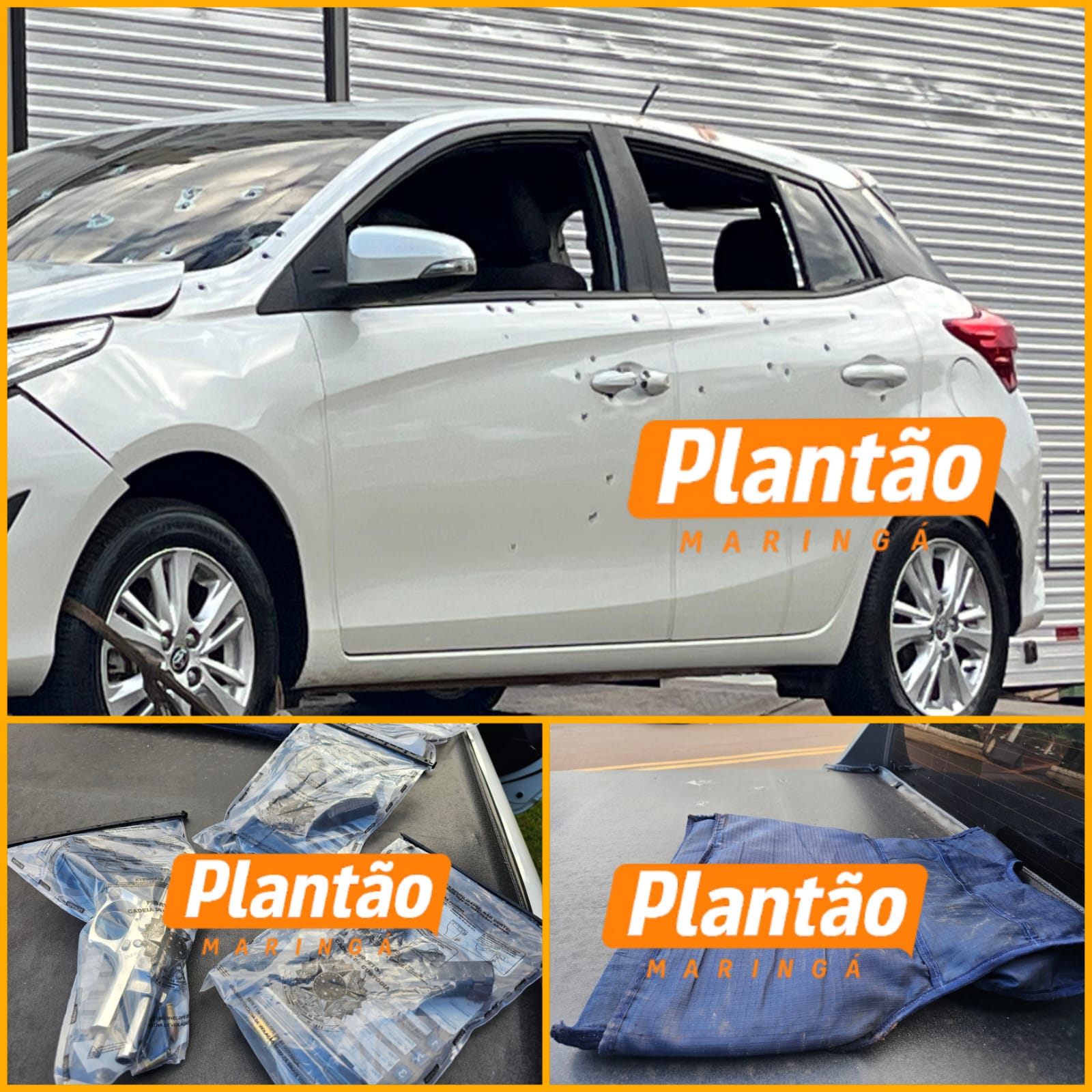 No local do confronto, os policiais apreenderam cinco armas de fogo do tipo pistola e um colete à prova de balas. O veículo utilizado pelos criminosos e duas armas foram encaminhados à Delegacia de Polícia Civil de Maringá. As outras três armas e o colete foram recolhidos pela Polícia Científica para a realização de perícia.