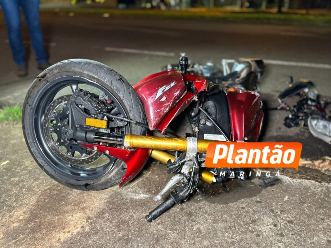 Um jovem de 20 anos sofreu ferimentos graves após um acidente envolvendo uma motocicleta de alta cilindrada e um carro estacionado na cidade de Maringá, na noite desta quinta-feira (21).