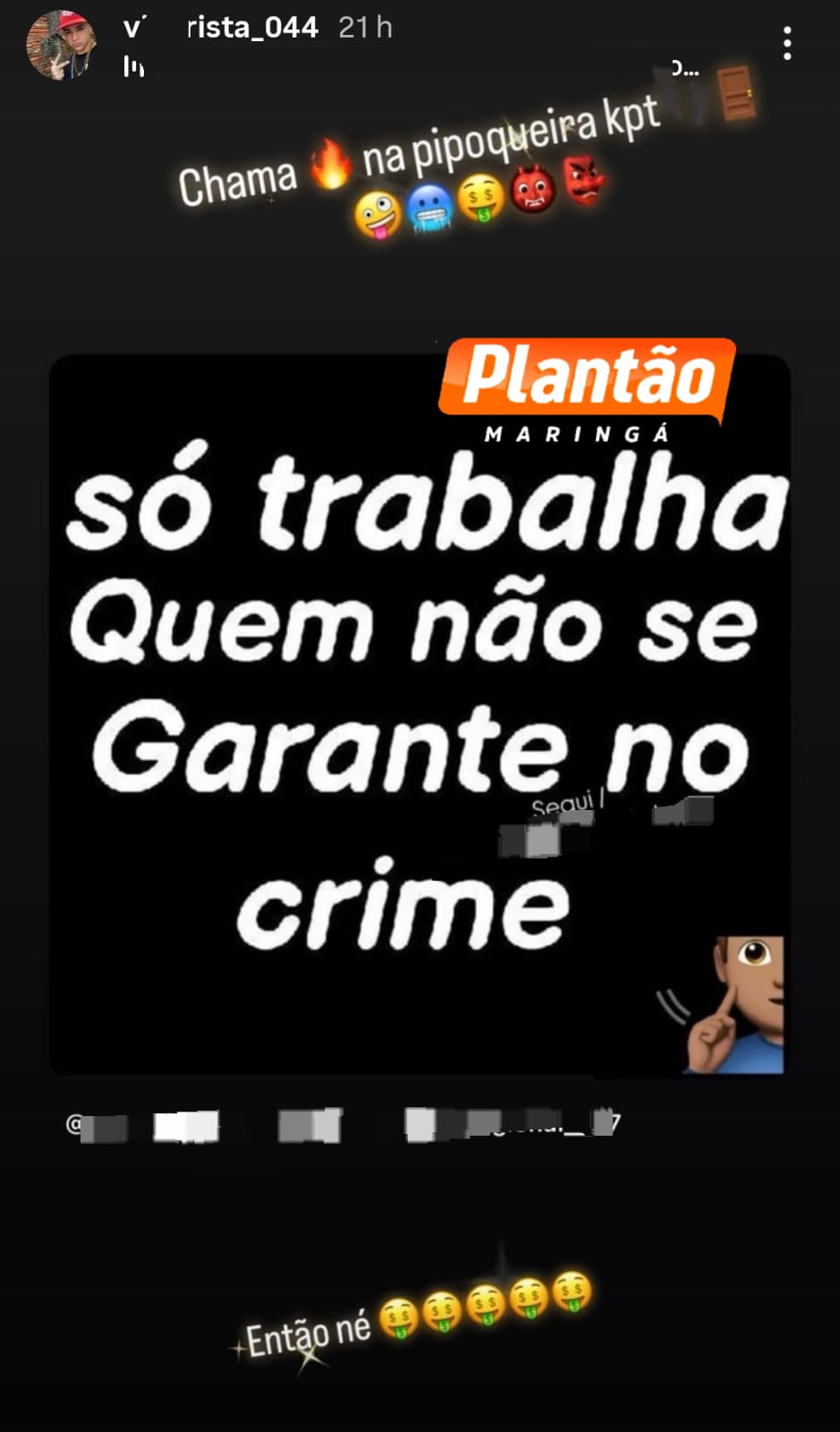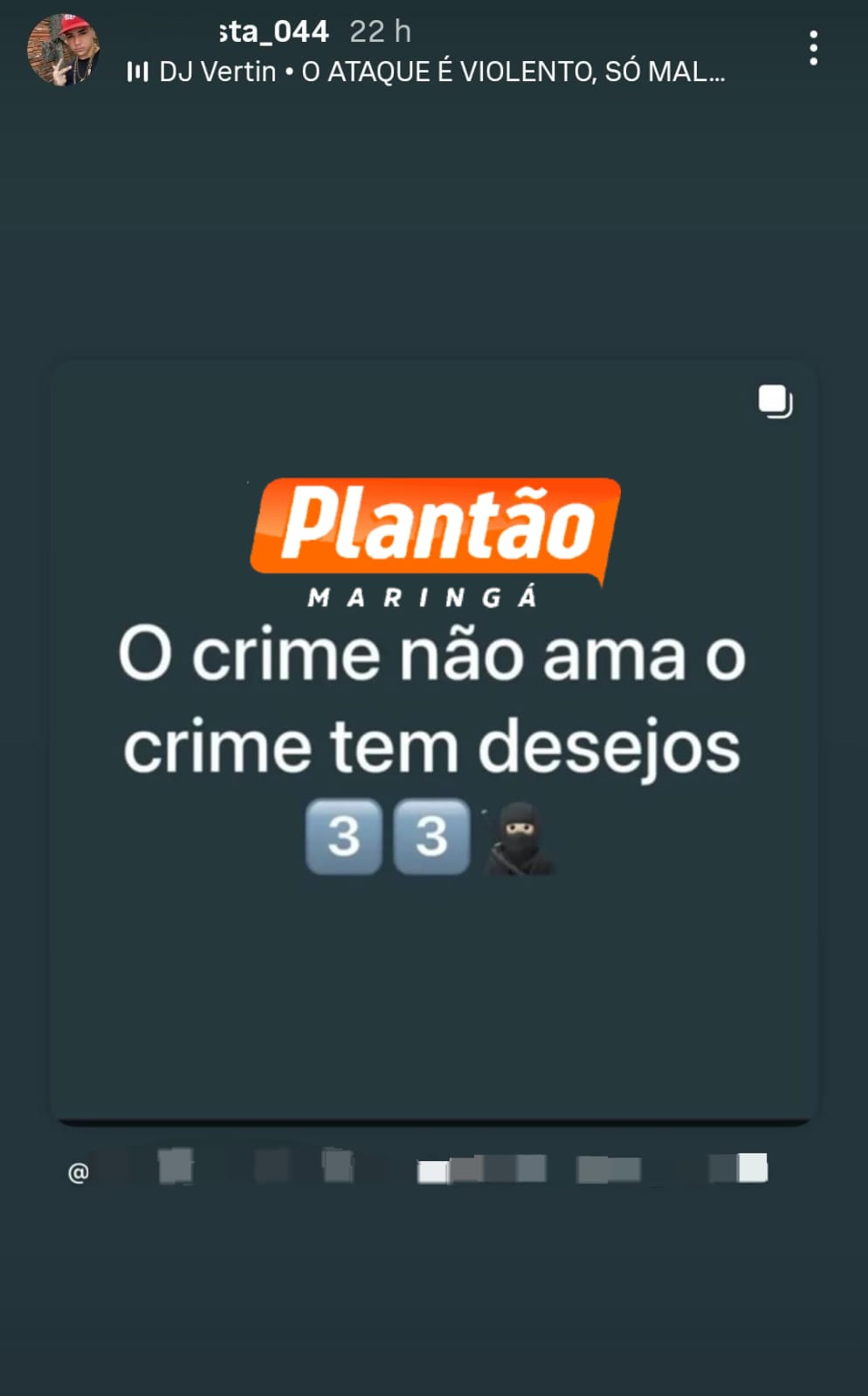 Nas redes sociais, Yuri costumava publicar mensagens em que fazia apologia ao crime. Em uma delas, escreveu: “O crime não ama, o crime tem desejo.” Em outra postagem, afirmou: “Só trabalha quem não se garante no crime.”