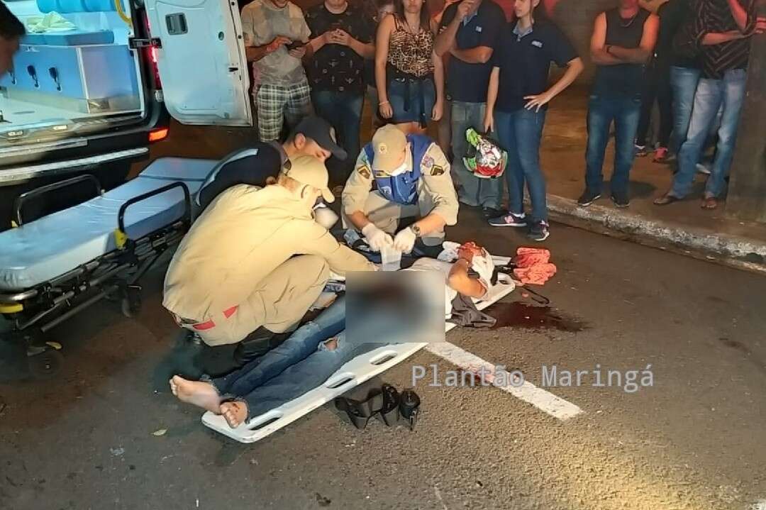 Uma jovem, de 18 anos sofreu ferimentos graves após ser atropelada por uma moto na Avenida Kakogawa, no Parque das Grevíleas, em Maringá, na noite desta sexta-feira (23).