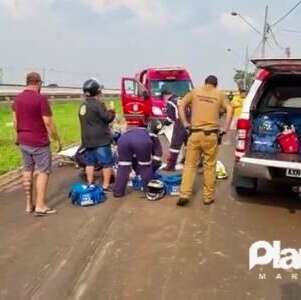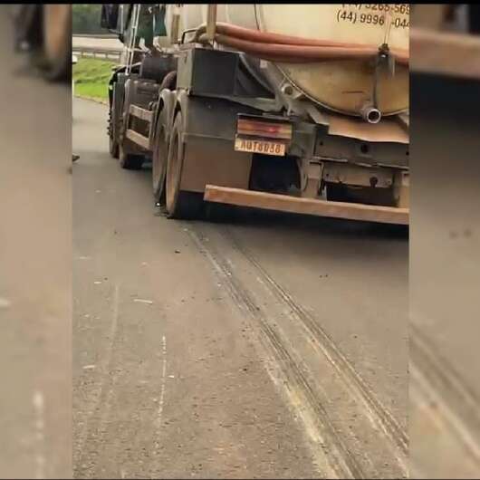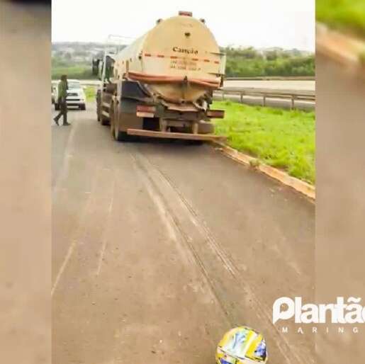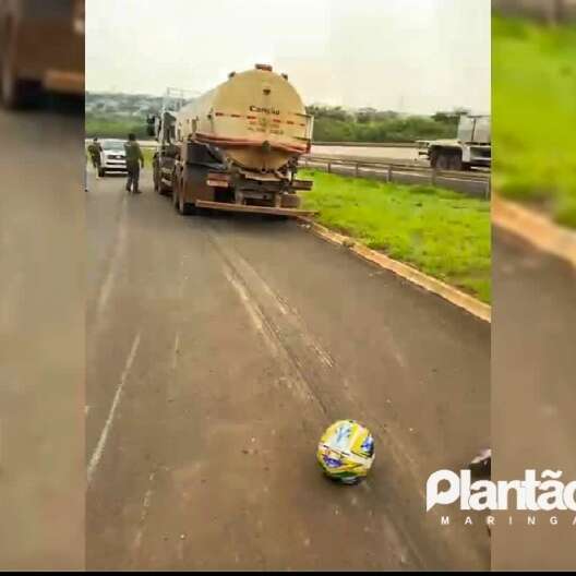 Um motociclista de 25 anos ficou gravemente ferido, em um acidente que envolveu duas motos e um caminhão tanque na Avenida Major Abelardo José da Cruz, via marginal do Contorno Norte, no bairro Jardim Dias, em Maringá. Segundo informações do Corpo de Bombeiros, o caminhão passou por cima das pernas do condutor de uma das motocicletas. O acidente mobilizou socorristas do SIATE e do Serviço de Atendimento Móvel de Urgência (SAMU).