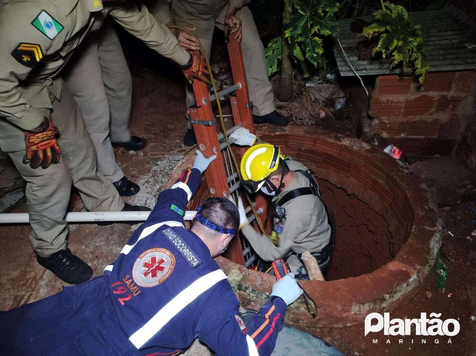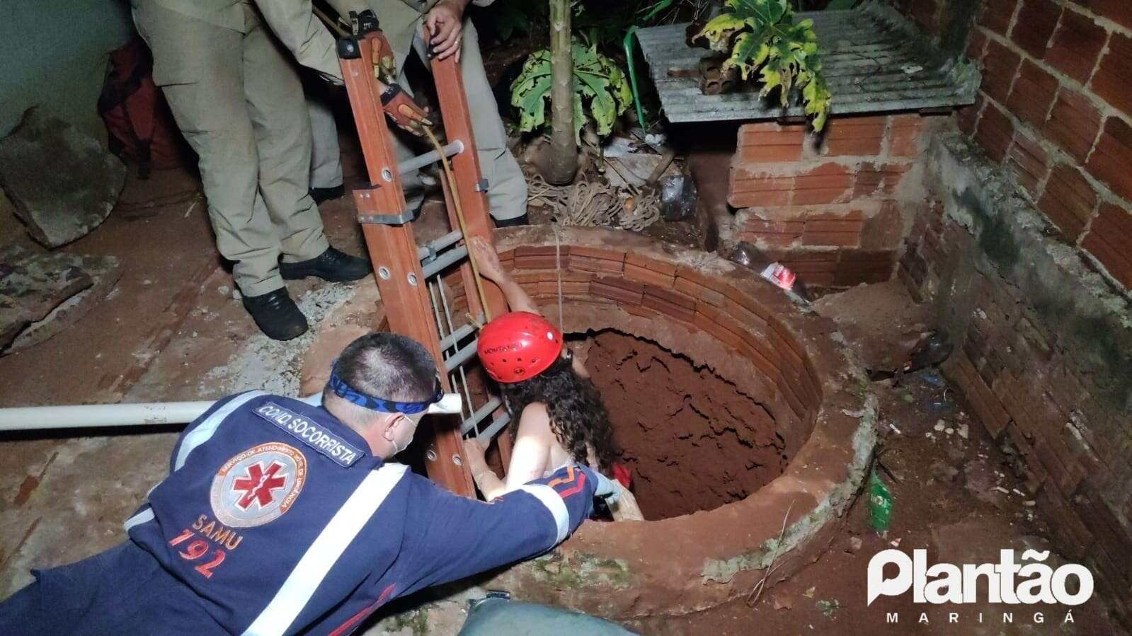 Equipes do 5°Grupamento do Corpo de Bombeiros de Maringá, e socorristas do SAMU de Paiçandu e equipe médica intervencionista, foram acionados na noite desta quarta-feira, 20 de outubro, para resgatar uma moça de 22 anos, que caiu dentro de uma fossa, de aproximadamente 4 metros de profundidade. O incidente ocorreu no quintal de uma residência, localizada no Jardim Santa Luzia, em Paiçandu.