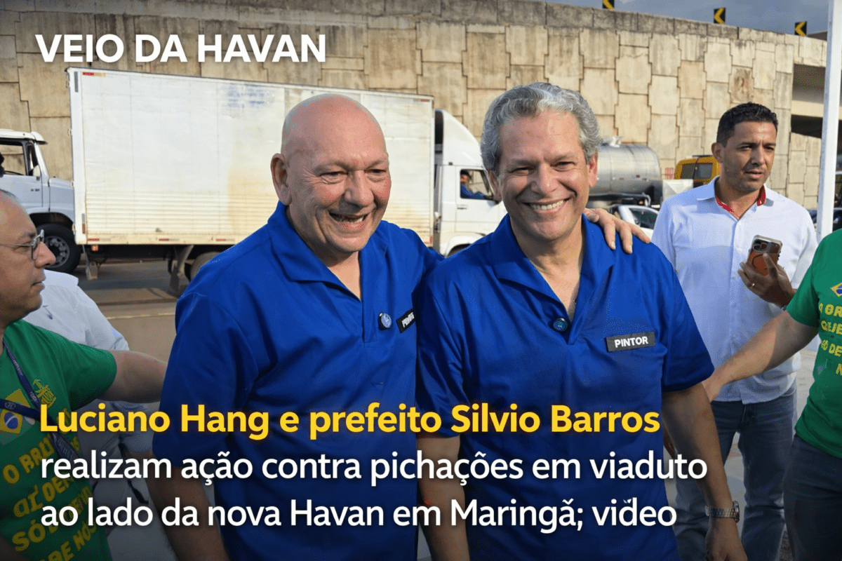 Na tarde desta sexta-feira, 27, o empresário Luciano Hang participou de uma ação de conscientização contra pichações ao lado da nova megaloja da Havan em Maringá. Ao lado do prefeito Silvio Barros, ele cobriu as pichações em um viaduto localizado próximo à unidade, que será inaugurada neste sábado.