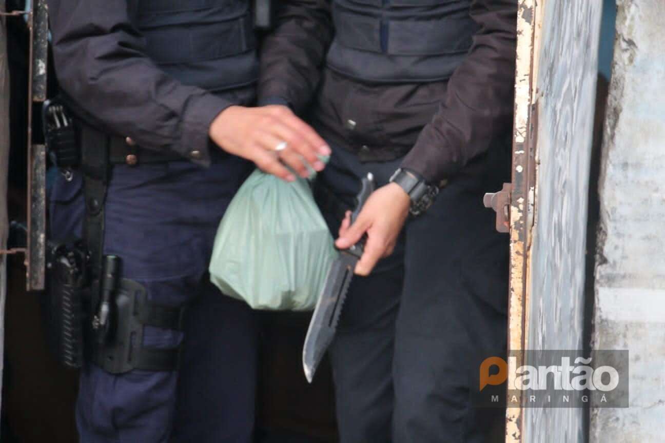 19 – No dia 25 de março de 2021, após policiais civis receberem informação de que as armas de fogo utilizadas no homicídio de Jhonathan Felipe, além de autores, estariam no Residencial Santa Clara, situado na Rua Jorge Benedito Seraval, no Jardim Guairaca, em Maringá, foi solicitado auxílio de militares do Pelotão de Choque do 4º BPM, que conjunta e integralmente prestaram-nos pronto apoio. Enquanto policiais civis fizeram o “perímetro externo”, policiais militares do Pelotão de Choque, ingressaram no imóvel (apartamento) e lá localizaram e apreenderam em flagrante Leandro de Rosa Queiroz, vulgo Lê cadela, e Caio Cieczinski Lopes, que estavam em posse de 02 (duas) pistolas de calibre 9 mm Parabellum (ou Luger) – Marca Diamond e Taurus, e 38 (trinta e oito) invólucros de “cocaína” (total de 48 gramas), sendo autuados em flagrante por este Delegado de Polícia pelos crimes de porte ilegal de arma de fogo de uso permitido e tráfico de drogas. Além das armas e drogas, foram localizadas no apartamento onde os presos estavam três balaclavas. As prisões em flagrante de Lê cadela, e Caio Cieczinski foram convertidas em preventivas.