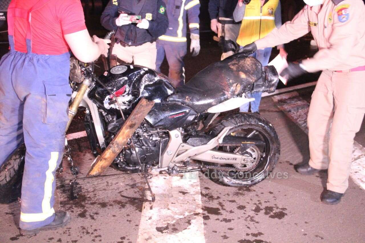 O impacto foi extremamente violento. Piloto e garupa morreram na hora. Equipes do SIATE/SAMU e socorristas da Concessionária VIAPAR estiveram no local, mas nada pode ser feito, há não ser constatar o óbito das vítimas. Uma das vítimas chegou a ser atingida por um dos rodados da carreta. O capacete que usava ficou destruído. Familiares (mãe e tio) de um dos rapazes, compareceram no local e identificaram o mesmo. Trata-se de Felipe Aparecido Ribeiro de Souza, de 23 anos. Felipe pilotava a moto na hora do acidente. O jovem motociclista era mecânico de caminhão. O tio nos relatou que o sobrinho trabalhava com ele em Maringá. Na hora do acidente ele retornava para a sua residência no Jardim Planalto em Marialva.