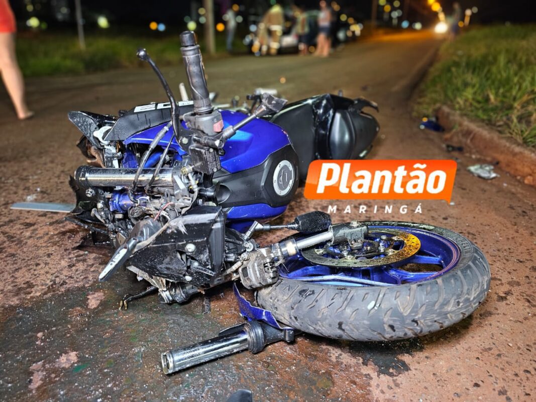 Um grave acidente registrado na noite desta segunda-feira (14), no Jardim Aclimação, em Maringá, deixou um motociclista de 21 anos ferido. Nathan Andres Ferreira Hidalgo pilotava uma Yamaha MT-03 pela Rua Ernesto Mariucci quando, no cruzamento com a Rua José de Oliveira, colidiu violentamente contra a lateral de um Chevrolet Corsa que teria invadido a preferencial.