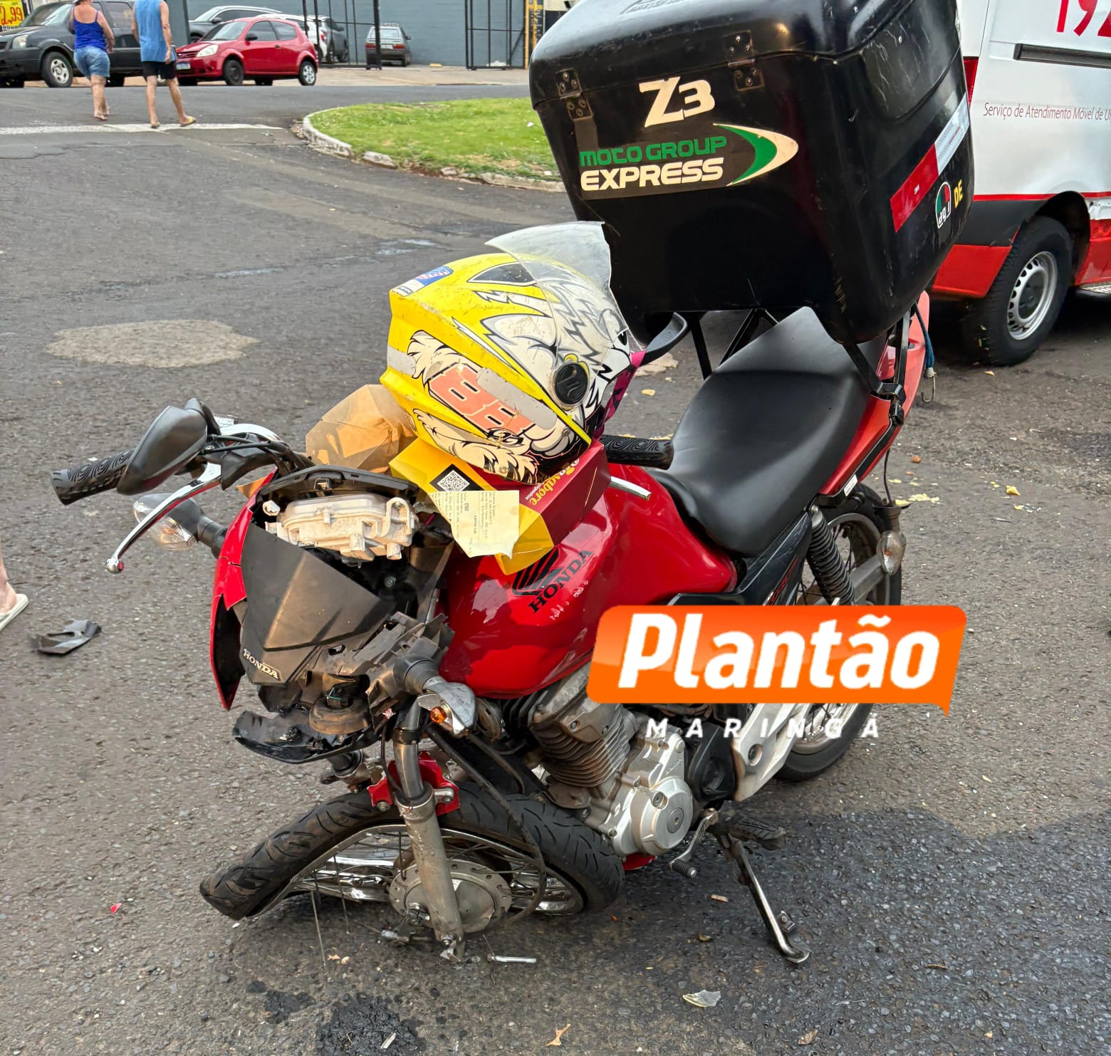 A motoentregadora Marcela, de 24 anos, sofreu ferimentos gravíssimos após ser atingida por um carro cujo motorista é suspeito de dirigir sob efeito de álcool. O acidente ocorreu na tarde deste domingo (07), na Avenida Kakogawa, em Maringá.