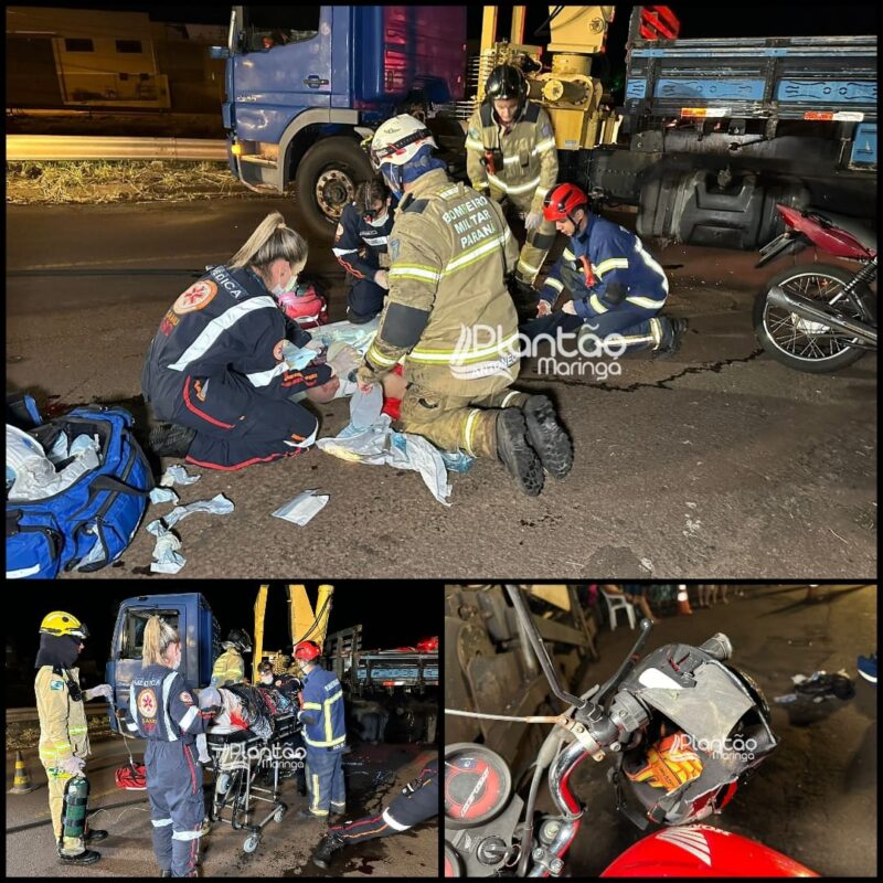 O acidente envolvendo um motociclista e um caminhão em Maringá, ocorreu na noite de quinta-feira, 18 de janeiro, na marginal do Contorno Norte, próximo à Avenida Kakogawa. O motociclista, Jair Marques da Silva, de 55 anos, sofreu um gravíssimo acidente ao colidir com a lateral de um caminhão.