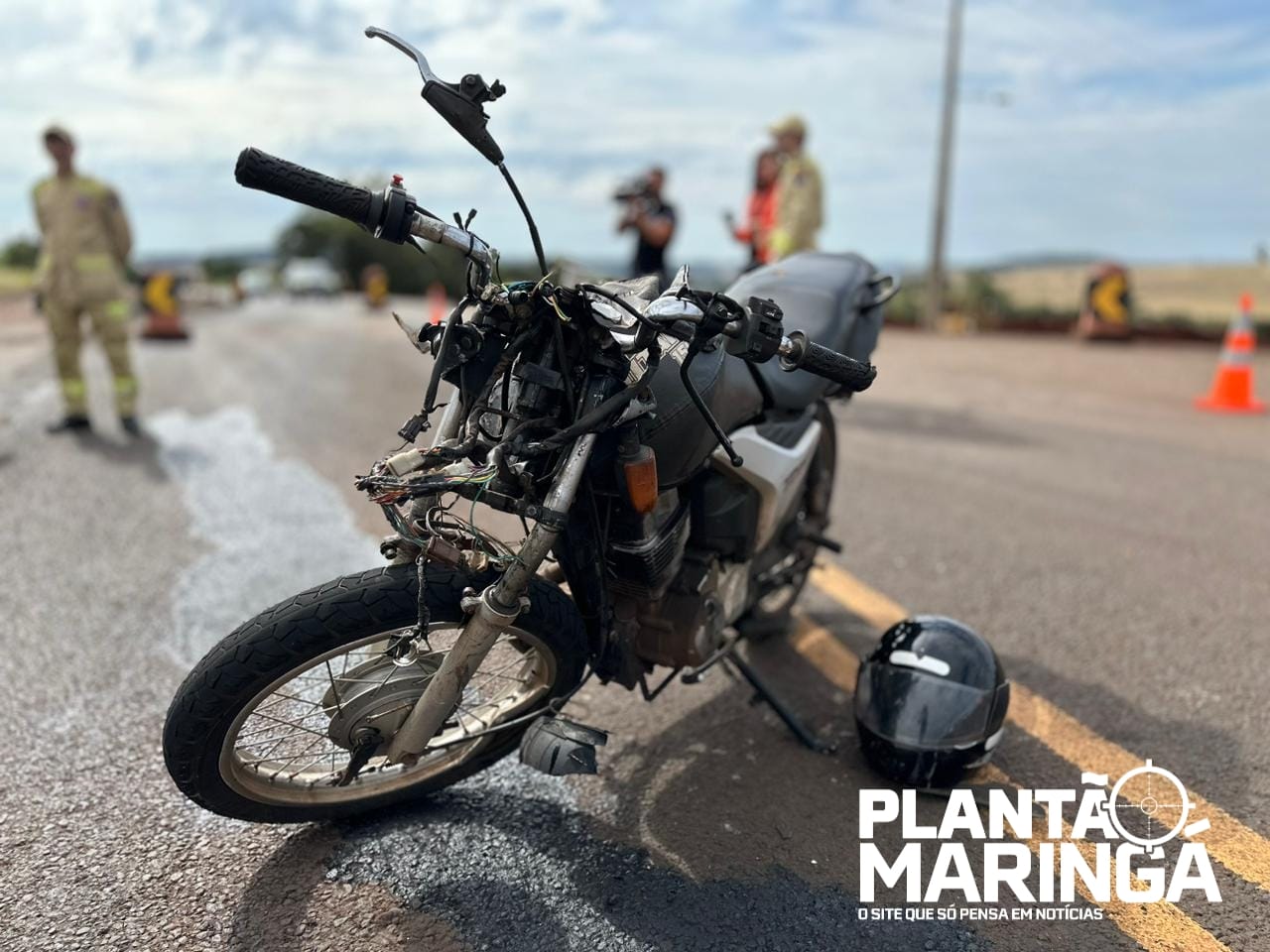 O motociclista Emanuel Rodrigues Ribeiro, de 21 anos, foi socorrido em estado grave após um grave acidente na rodovia PR-317, próximo ao Rio Pirapó, em Maringá. A colisão ocorreu quando o motorista de um Chevrolet Meriva invadiu a pista contrária, resultando em um choque frontal com a motocicleta conduzida por Emanuel.