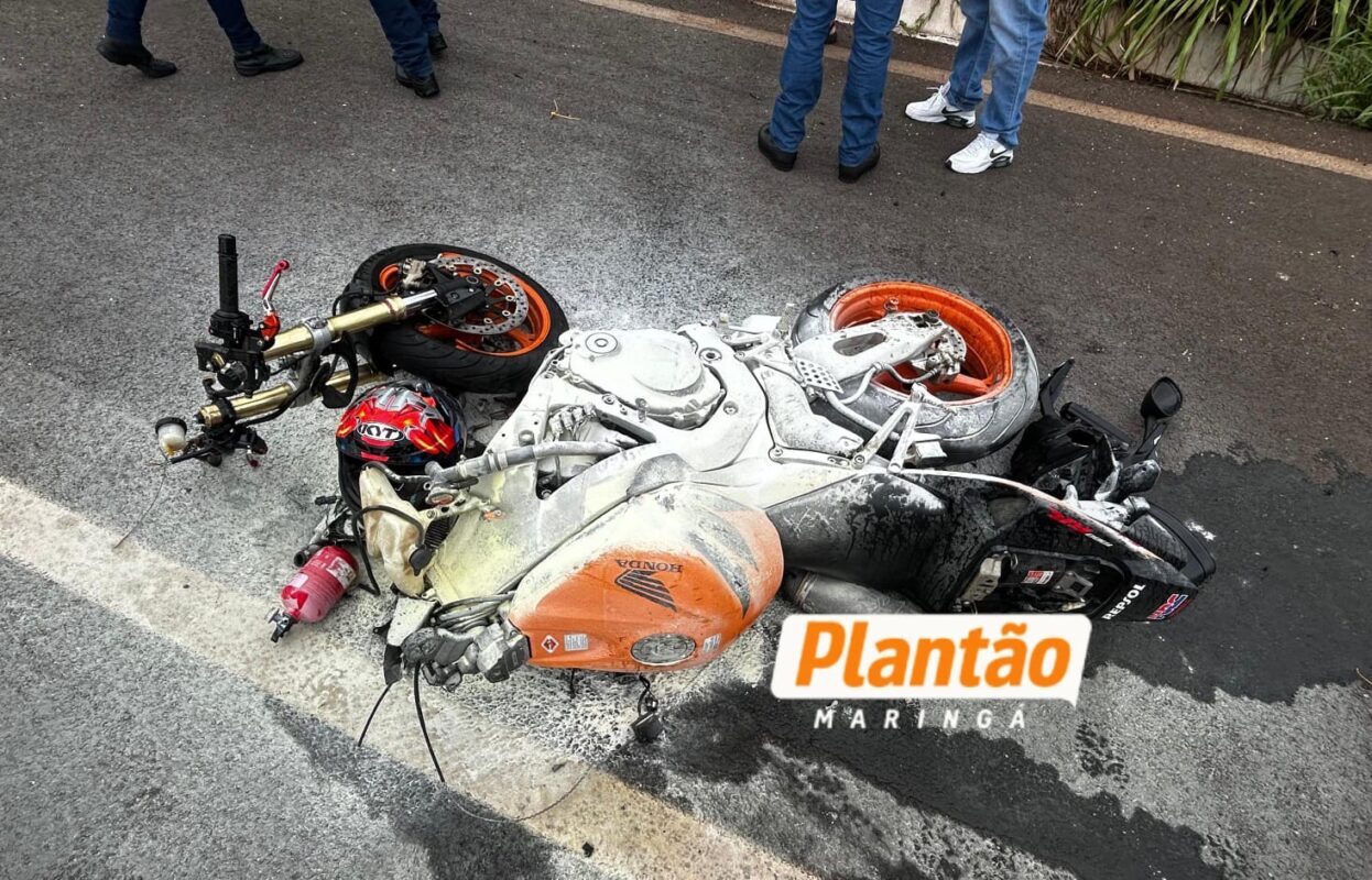 Um grave acidente envolvendo uma motocicleta de alta cilindrada foi registrado na tarde deste domingo na rodovia BR-376, nas proximidades da praça de pedágio entre Mandaguaçu e Presidente Castelo Branco.
