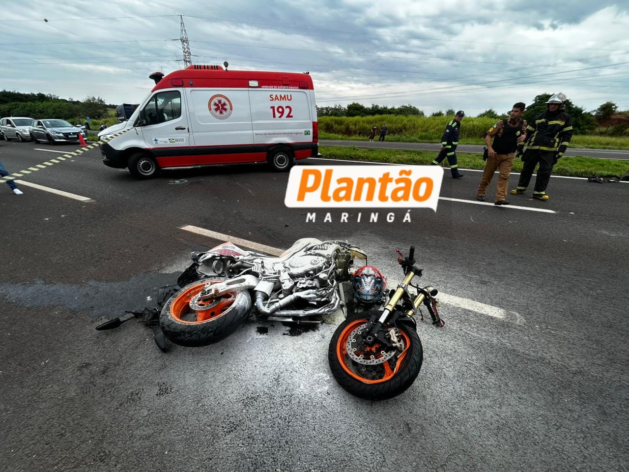 Um grave acidente envolvendo uma motocicleta de alta cilindrada foi registrado na tarde deste domingo na rodovia BR-376, nas proximidades da praça de pedágio entre Mandaguaçu e Presidente Castelo Branco.