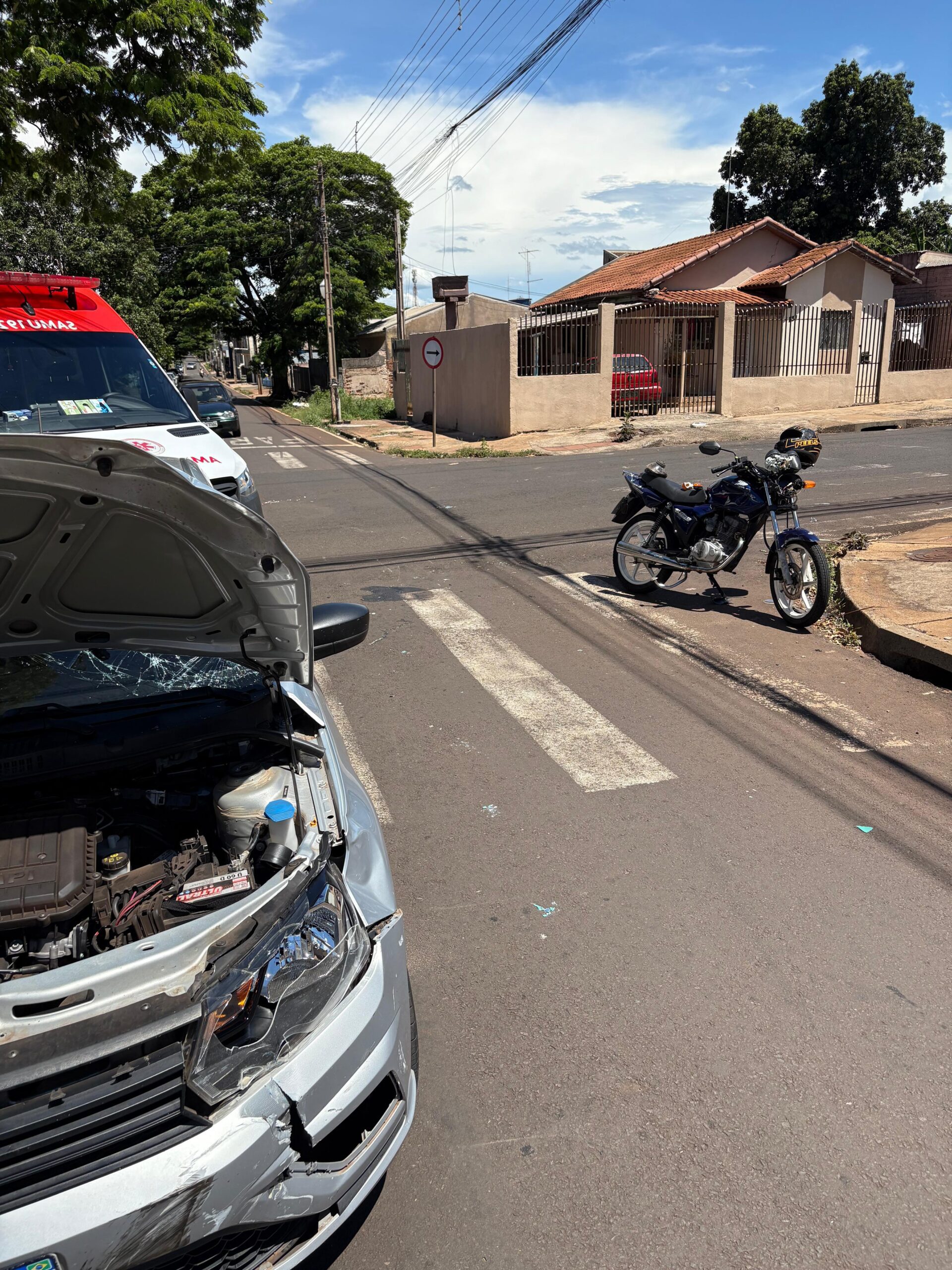 Na tarde da última segunda-feira (29), um grave acidente de trânsito foi registrado no cruzamento das ruas Santos Dumont e Marechal Deodoro, no município de Sarandi. O motociclista David Wesley dos Santos, de 27 anos, ficou gravemente ferido após a motocicleta que conduzia colidir contra um automóvel e, na sequência, atingir uma árvore.