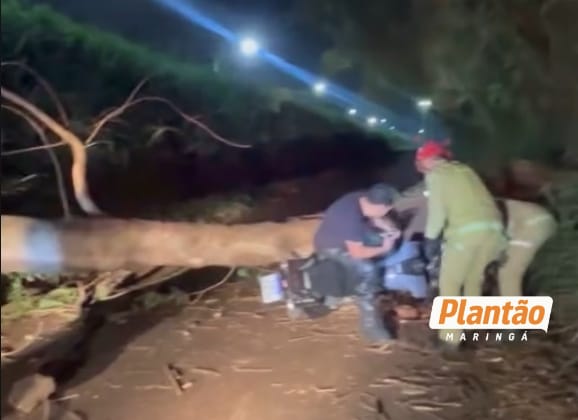 Um grave acidente foi registrado na noite de terça-feira, 7, na Avenida João Pereira, no Jardim Seminário, em Maringá. O jovem, de 21 anos, ficou ferido após ser atingido por uma árvore enquanto pilotava uma motocicleta. De acordo com as informações apuradas no local, a árvore caiu no momento em que ventos fortes atingiam a região.