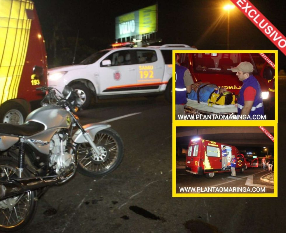 Um homem foi socorrido com ferimentos graves, após sofrer um acidente no final da noite desta sexta-feira (20), na rotatória da Avenida Colombo, com Contorno Sul, na divisa de Maringá e Sarandi.