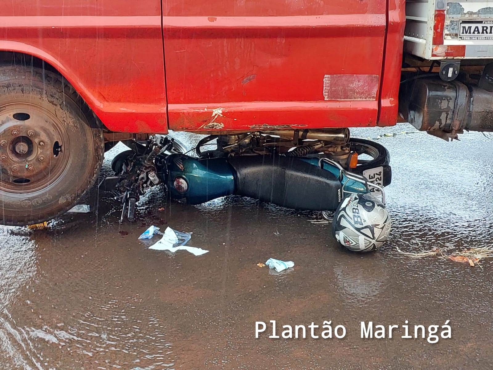 Socorristas do 05°Grupamento do Corpo de Bombeiros e Samu Maringá-Sarandi, realizaram um resgate dramático na tarde deste sábado (8), em um dos bairros de Sarandi. Eles foram acionados para atenderem uma ocorrência de acidente de trânsito, envolvendo uma motocicleta e um caminhão baú. A colisão ocorreu na Avenida Rio de Janeiro.